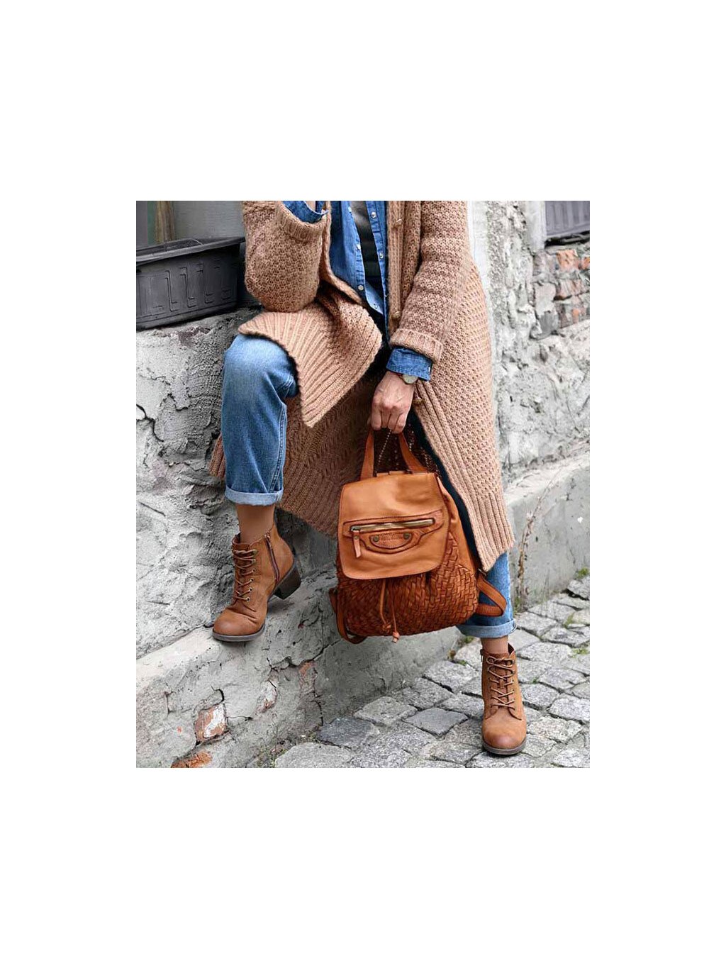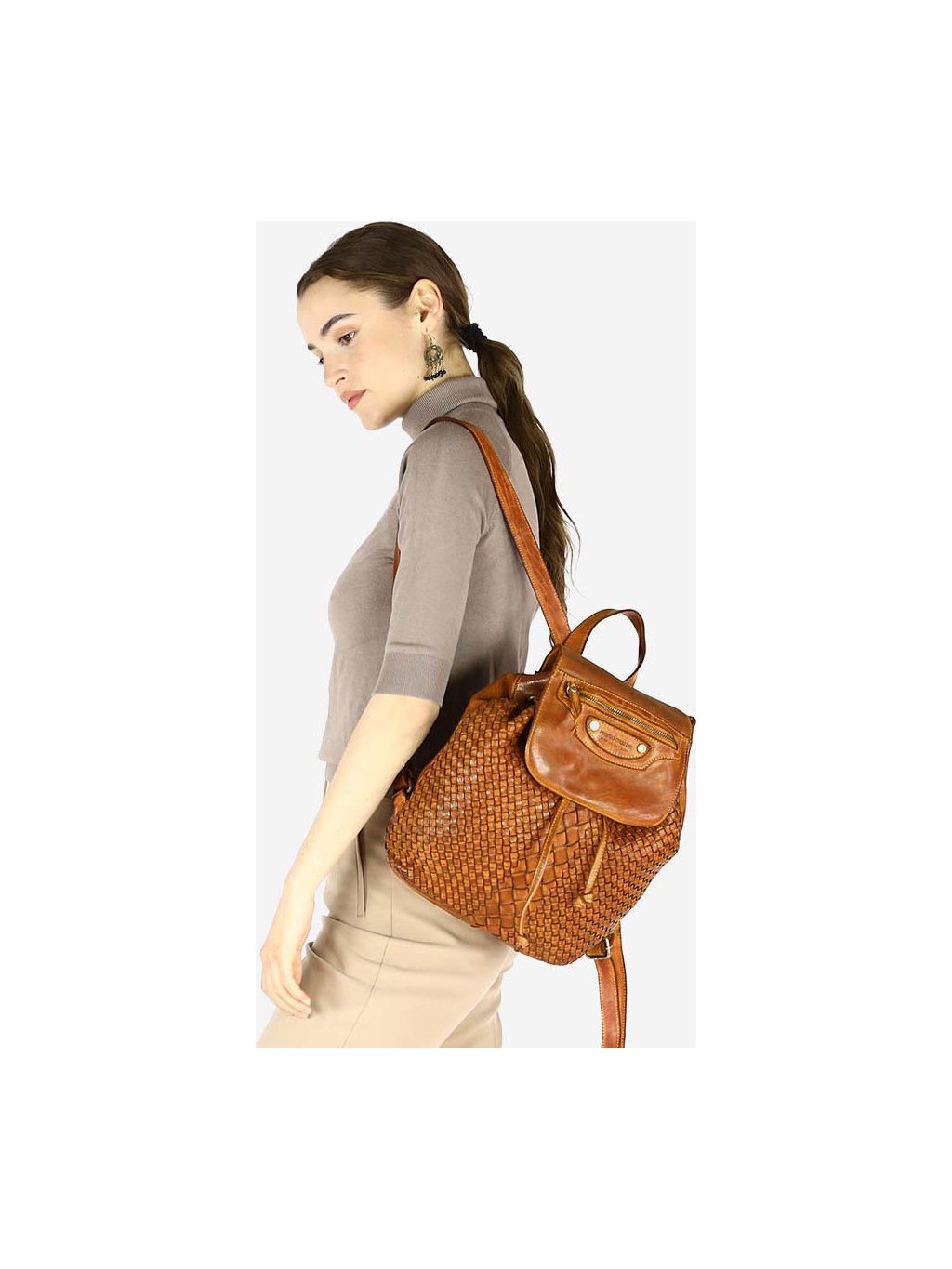- dámsky kožený batoh pleteného designu od značky Marco Mazzini