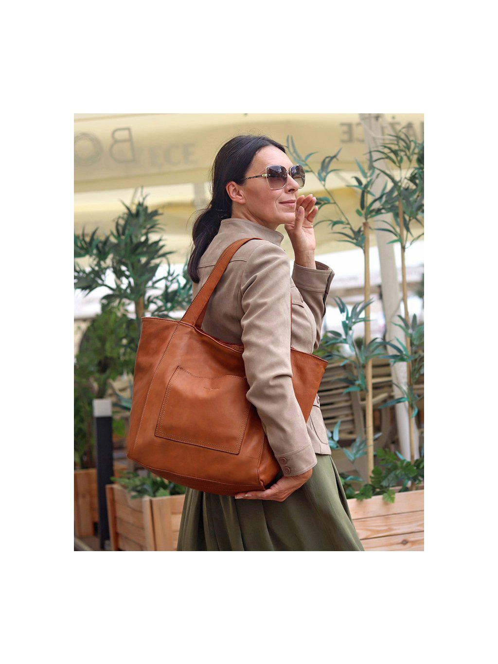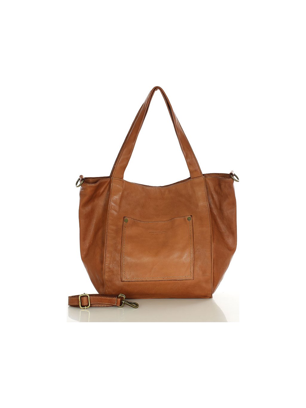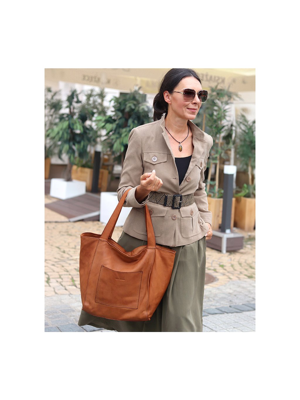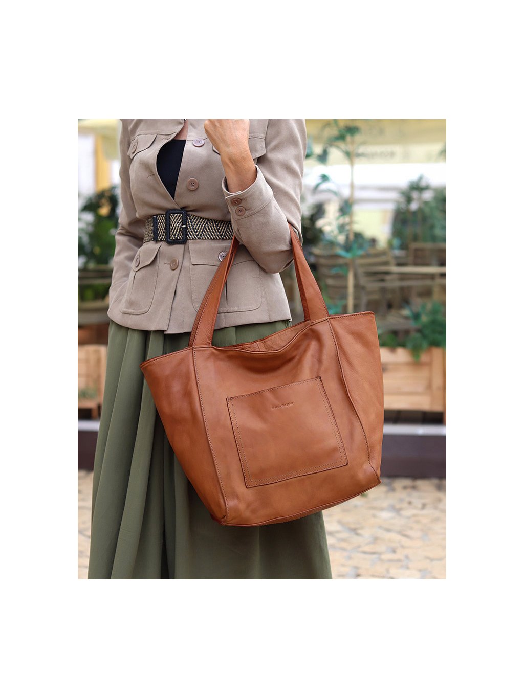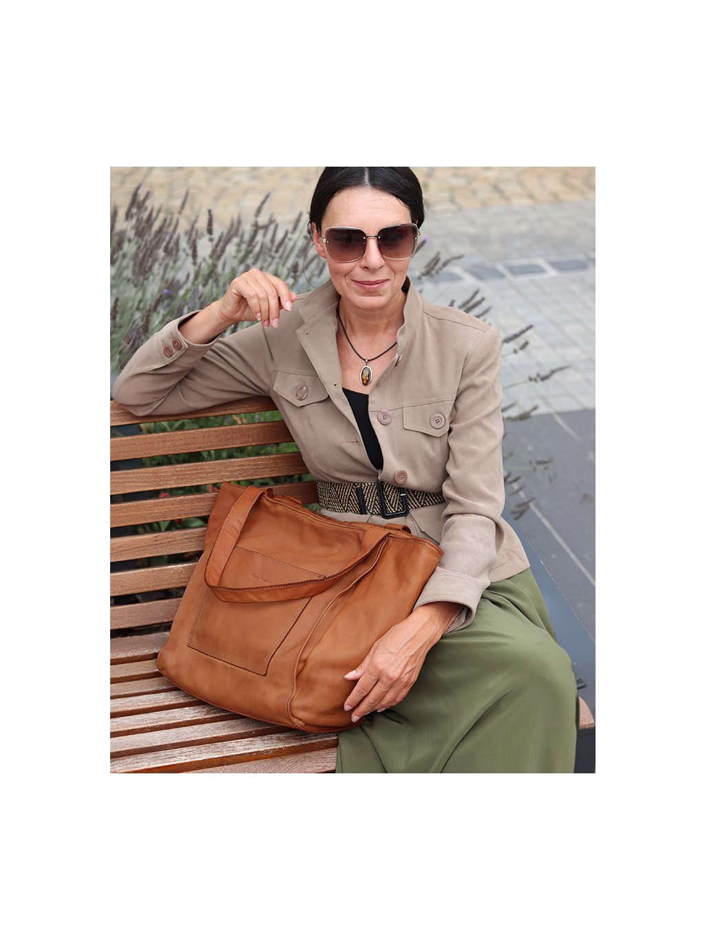 MARCO MAZZINI Svetlohnedá priestranná kožená shopper kabelka