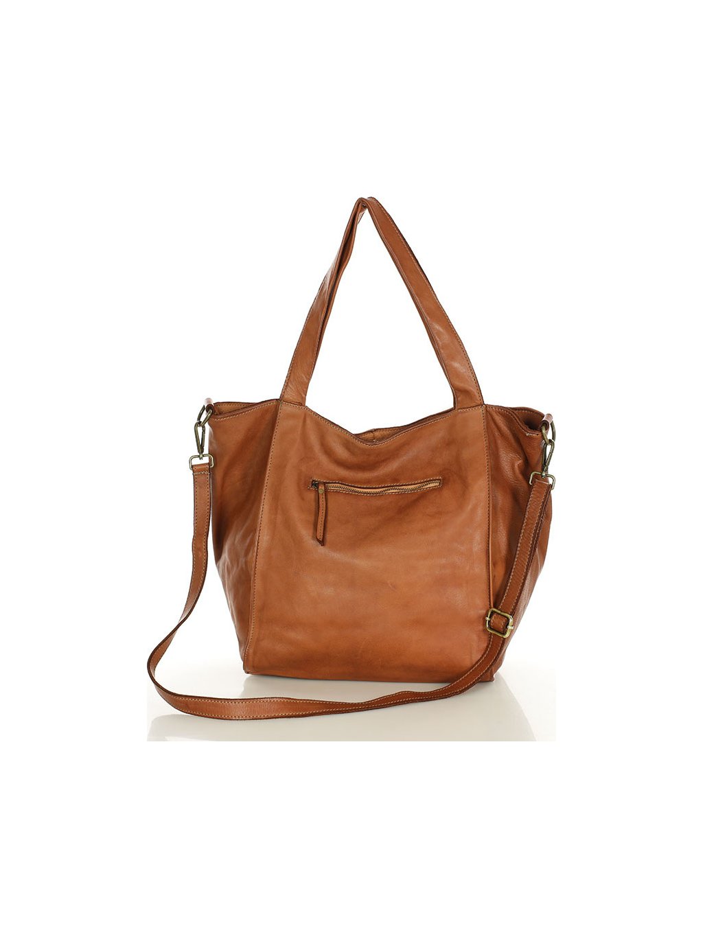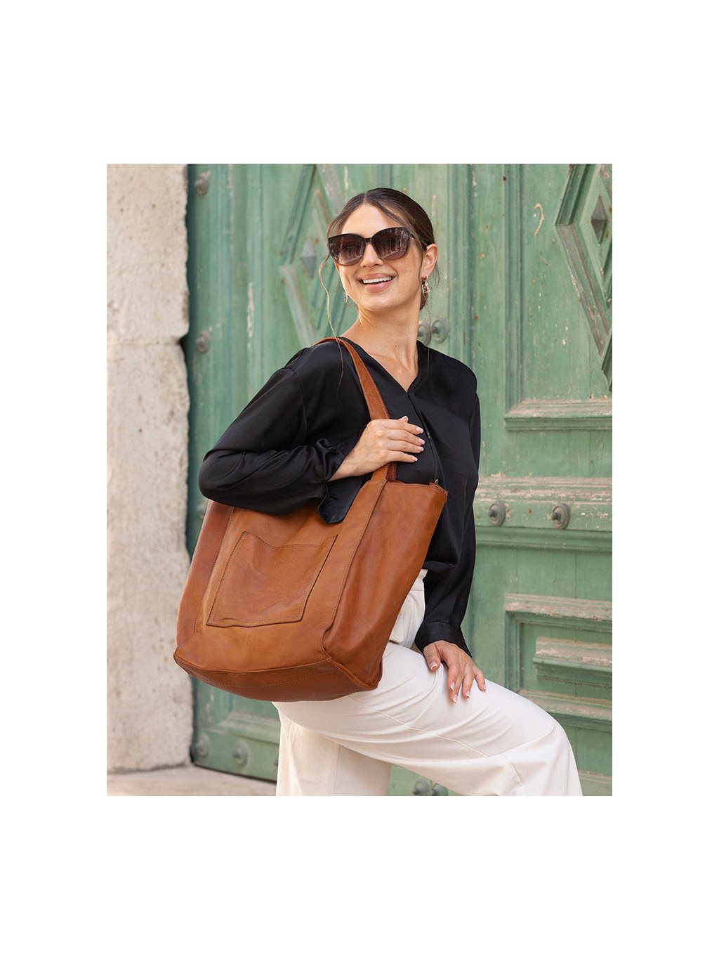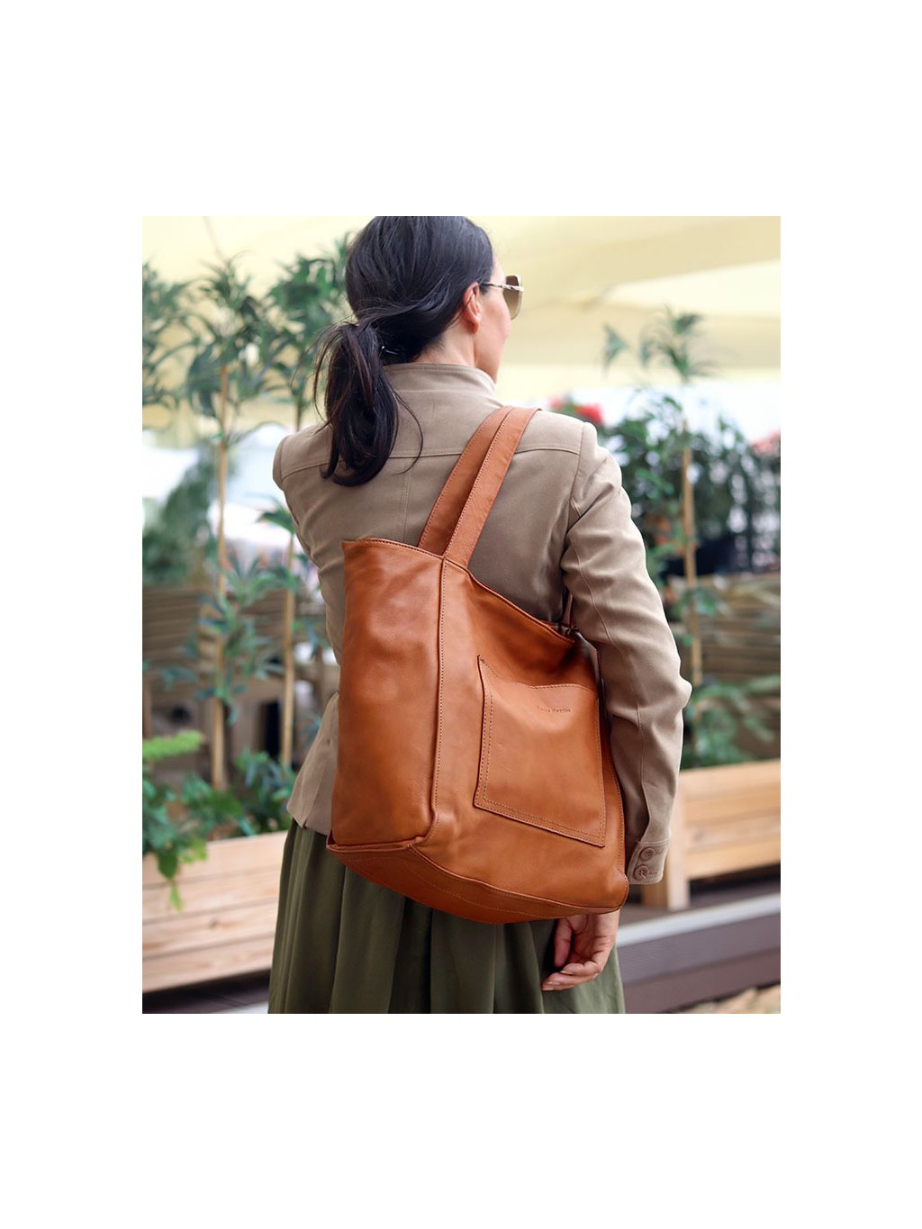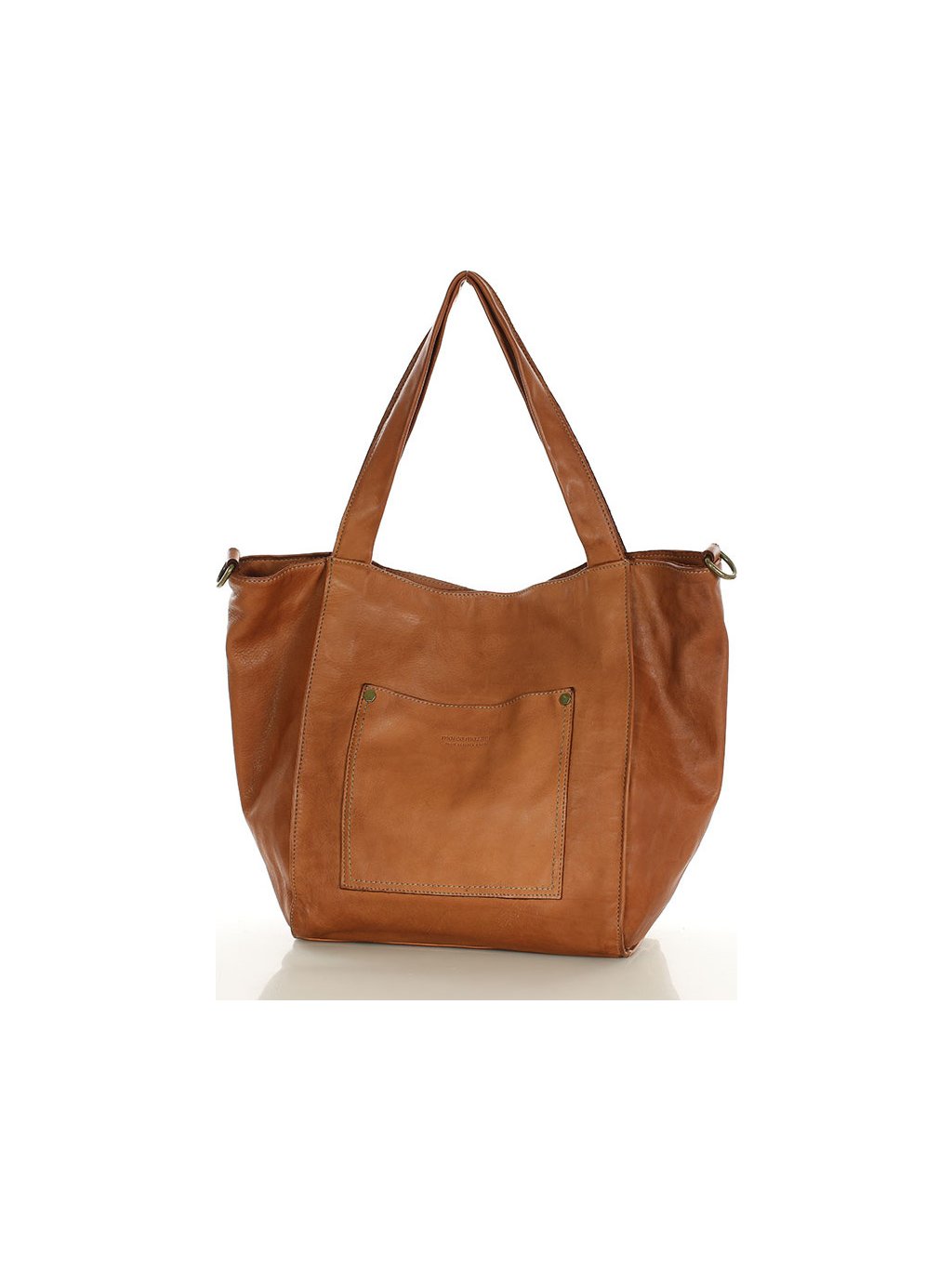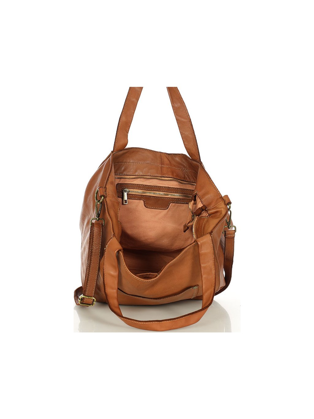 MARCO MAZZINI Svetlohnedá priestranná kožená shopper kabelka