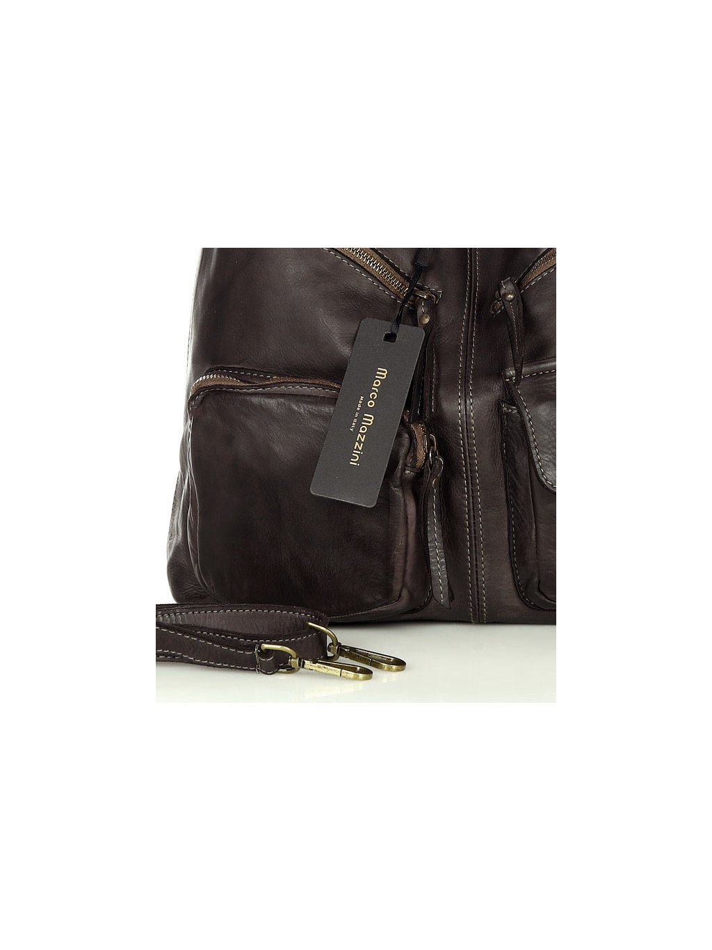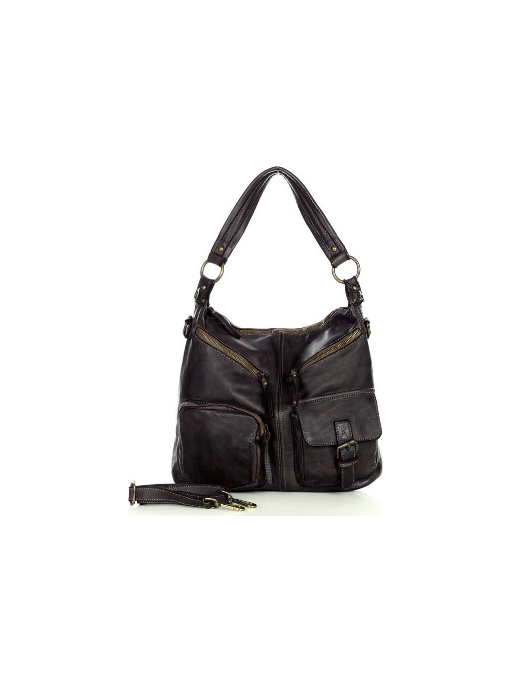 Dámska kabelka nadčasového štýlu talianskej značky. Ručne šitá. Prístup do kabelky na zips. V prednej časti sú 4 vrecká, vo vnútri ďalšie 3 vrecká, jedno z toho na zips. Taška je formátu A4, ideálna kabelka do práce.