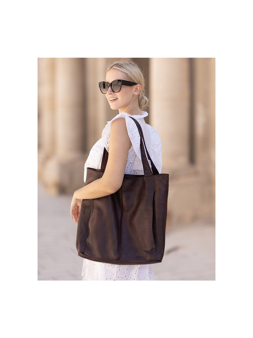 MARCO MAZZINI Tmavohnedá kožená shopper kabelka