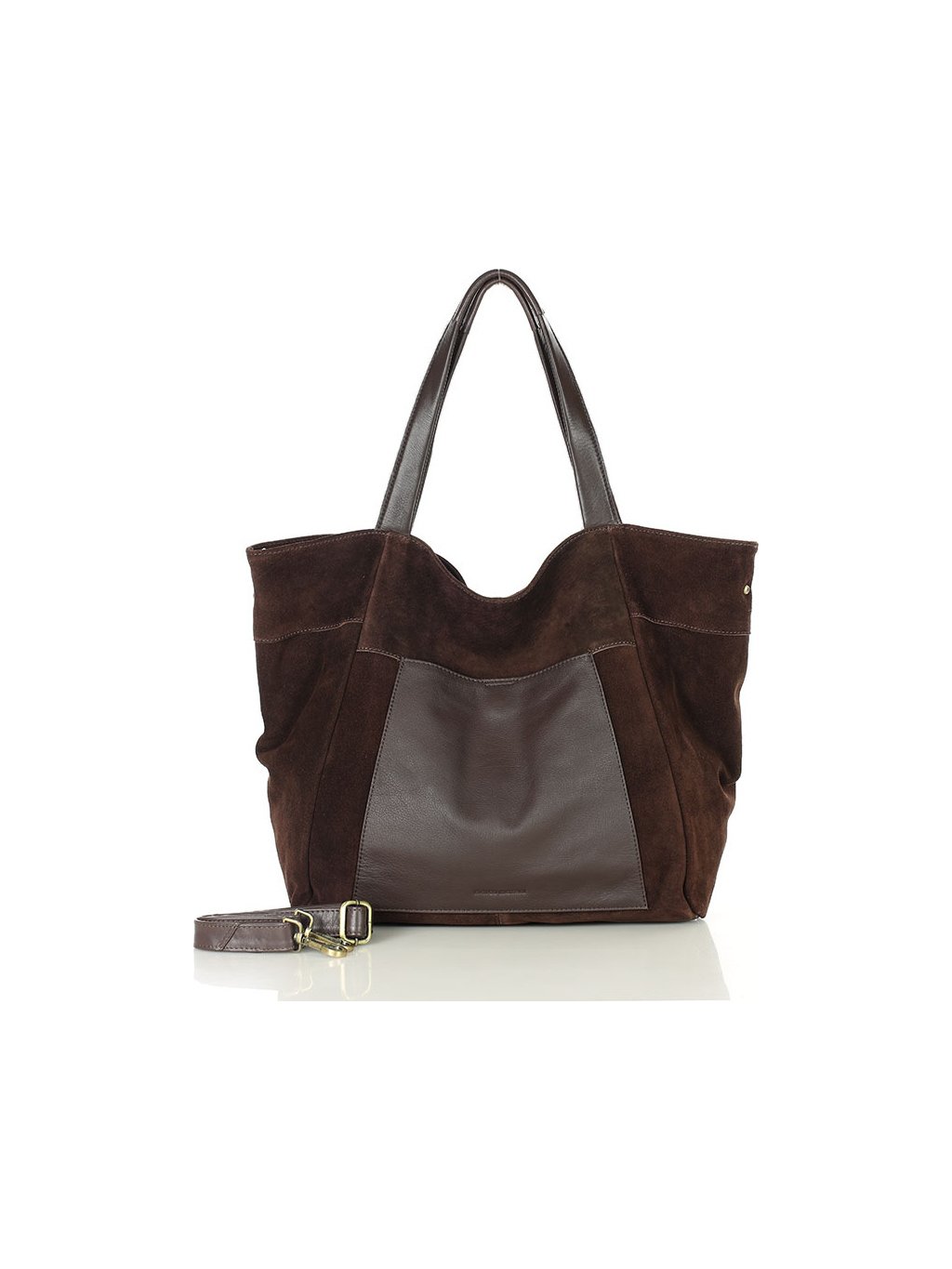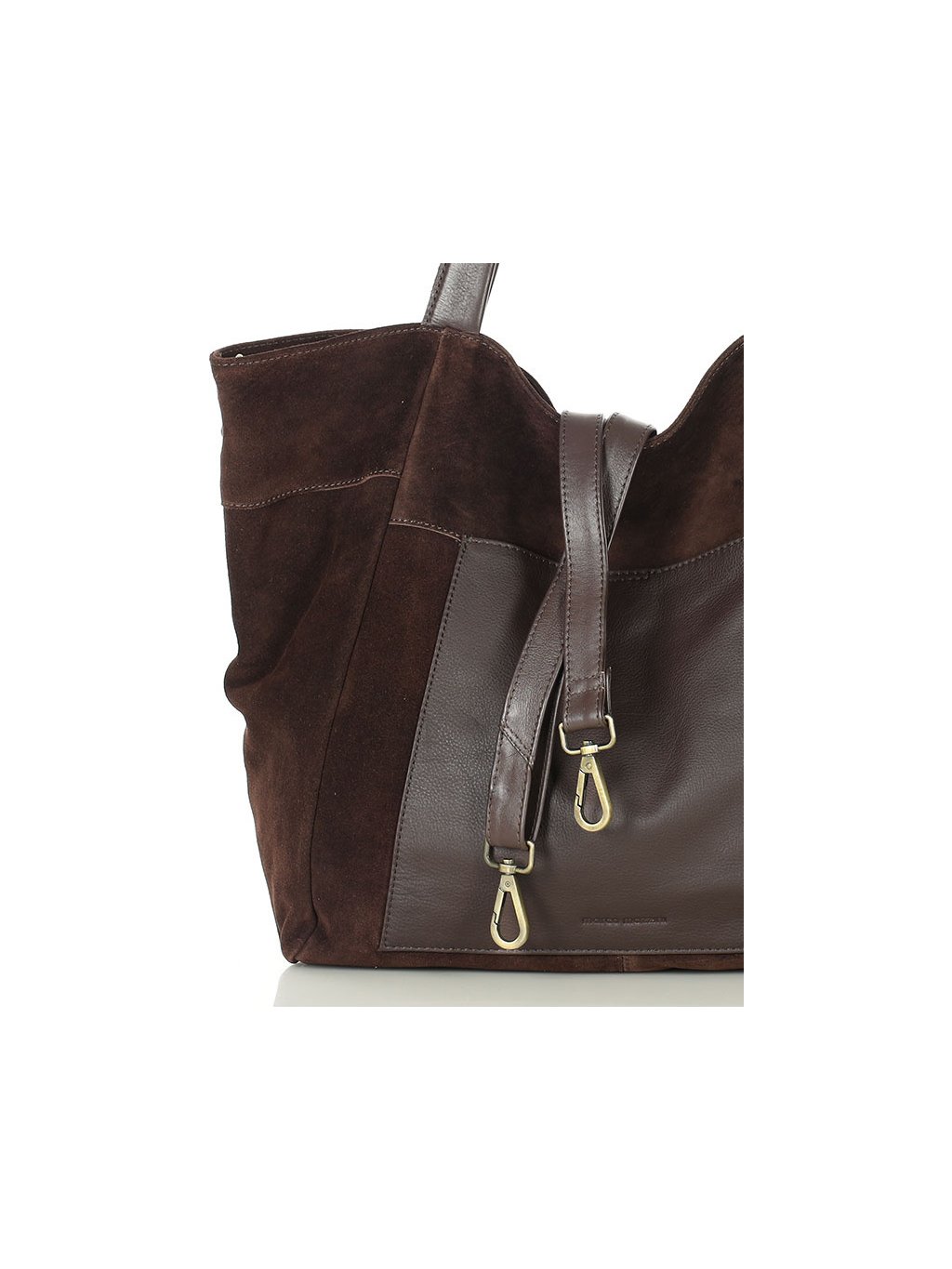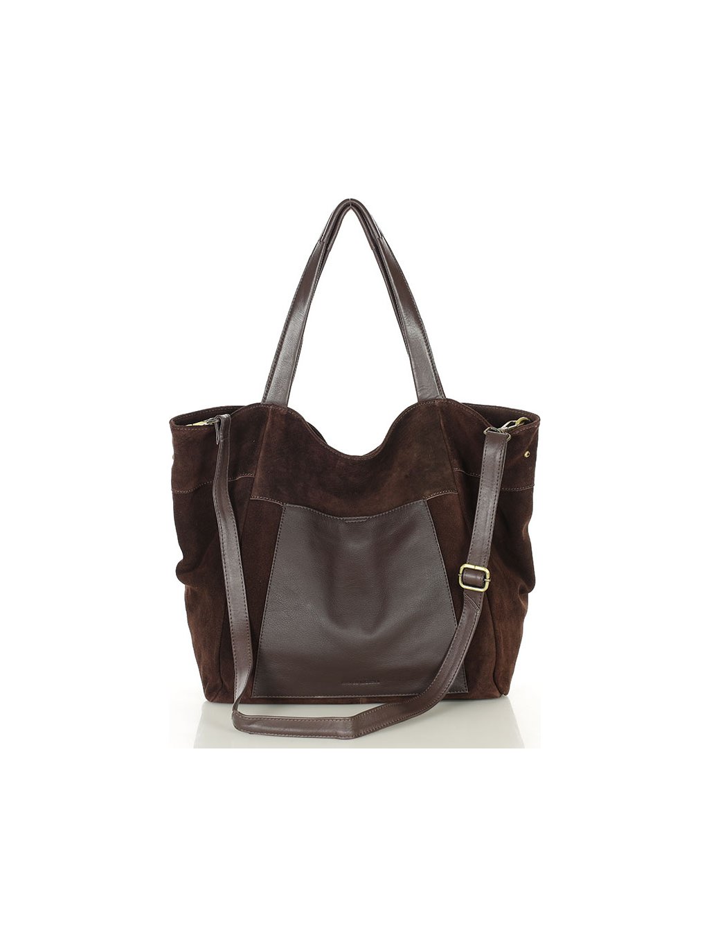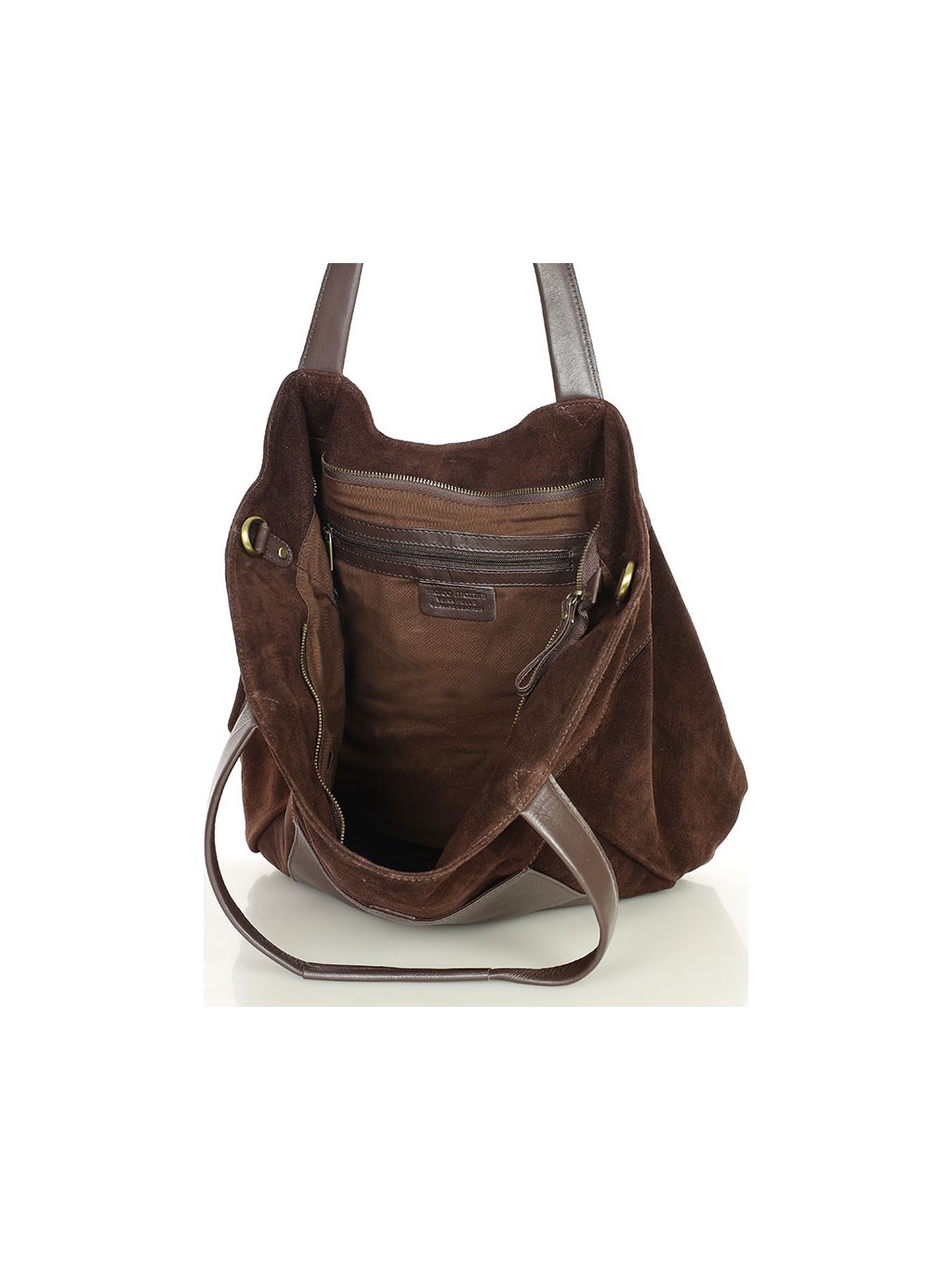 MARCO MAZZINI veľká semišová kožená shopper kabelka s vreckom tmavo hnedá