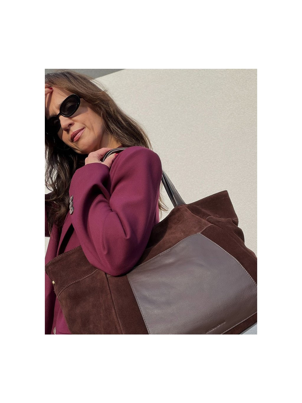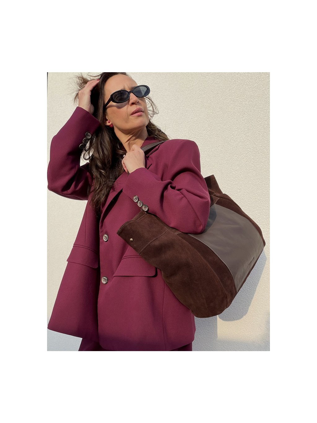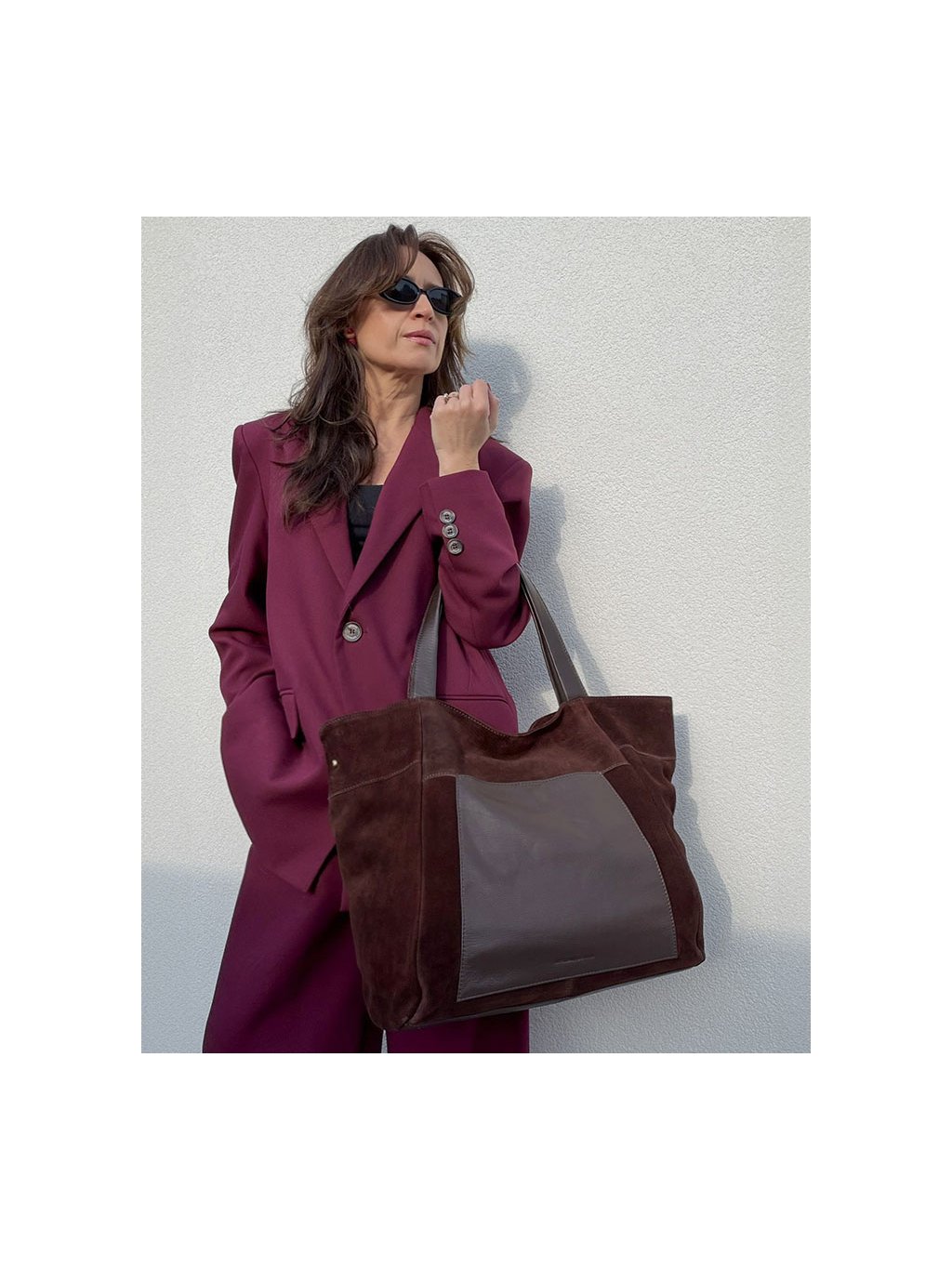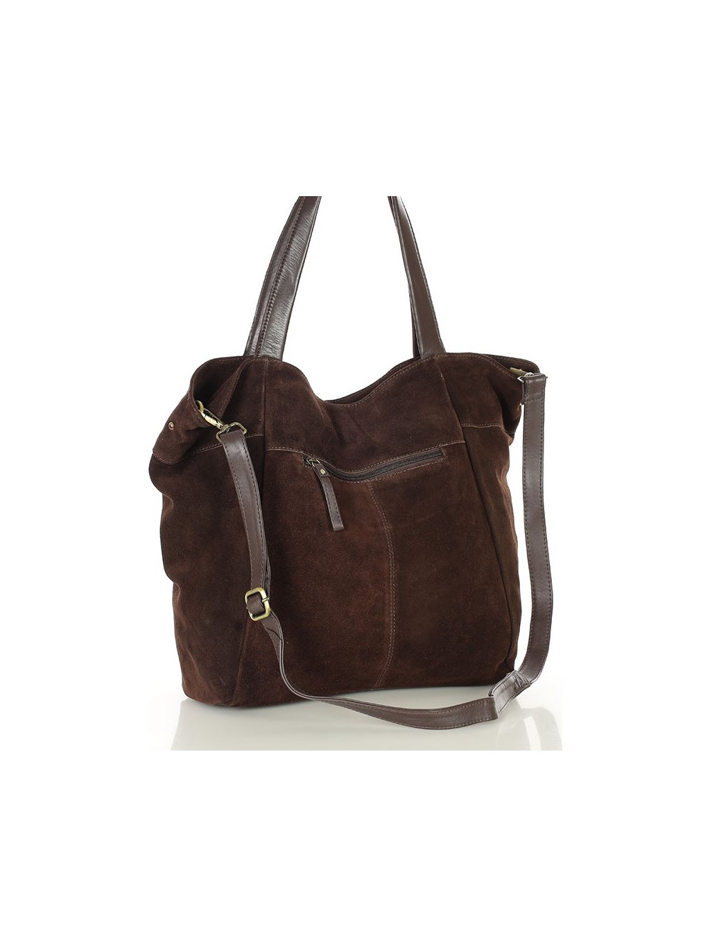 MARCO MAZZINI veľká semišová kožená shopper kabelka s vreckom tmavo hnedá