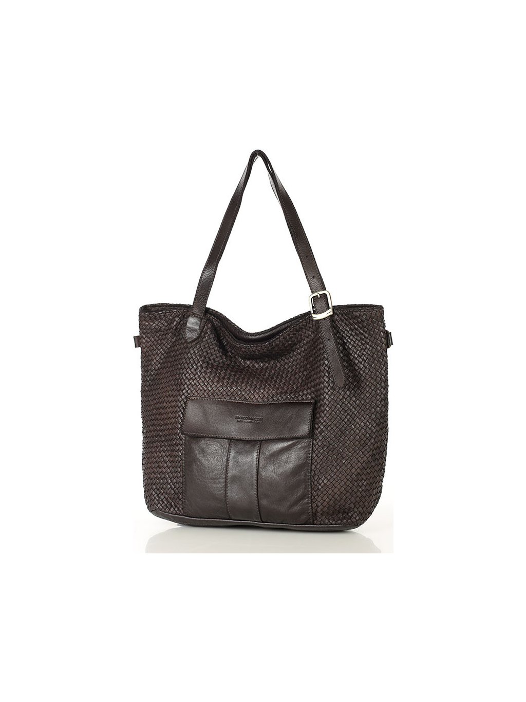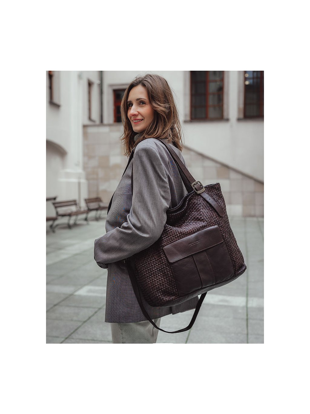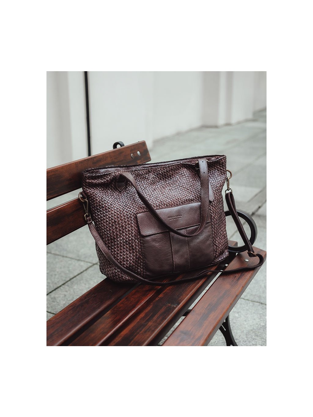 MARCO MAZZINI Veľká tmavohnedá tkaná kabelka