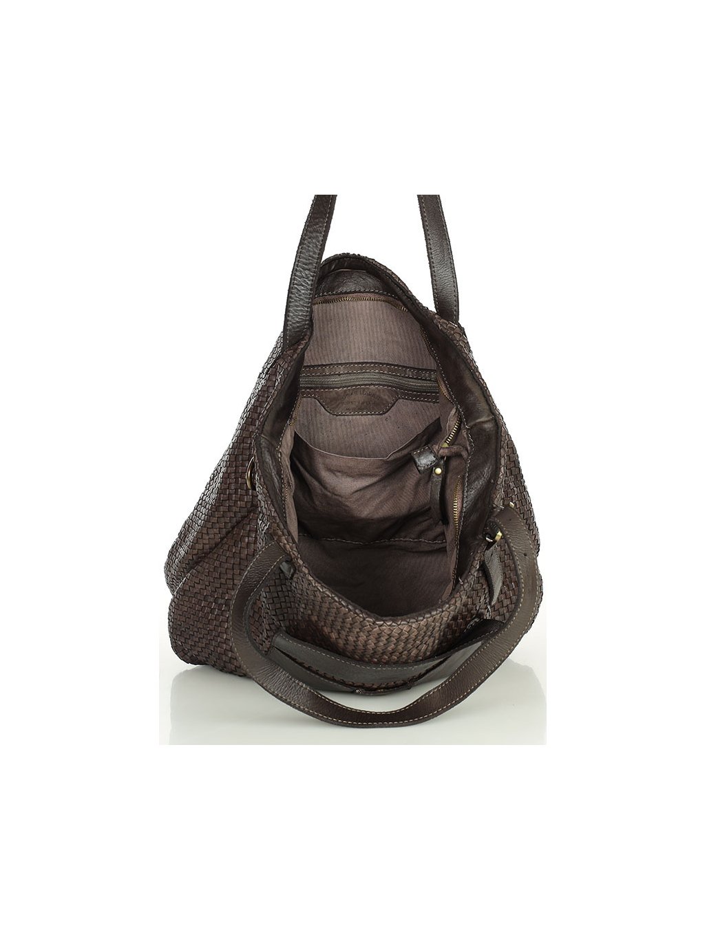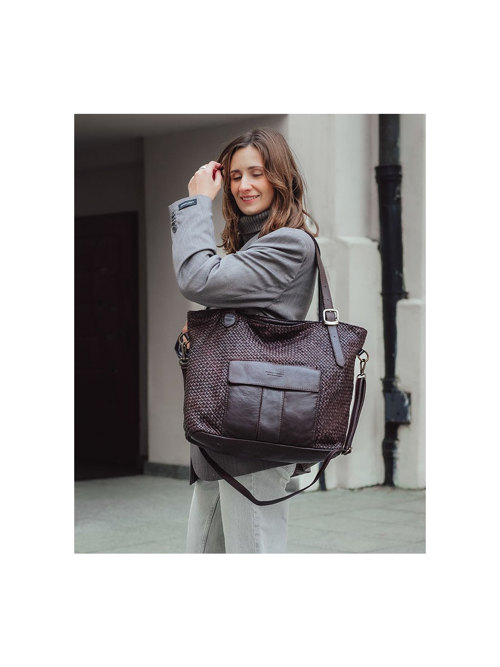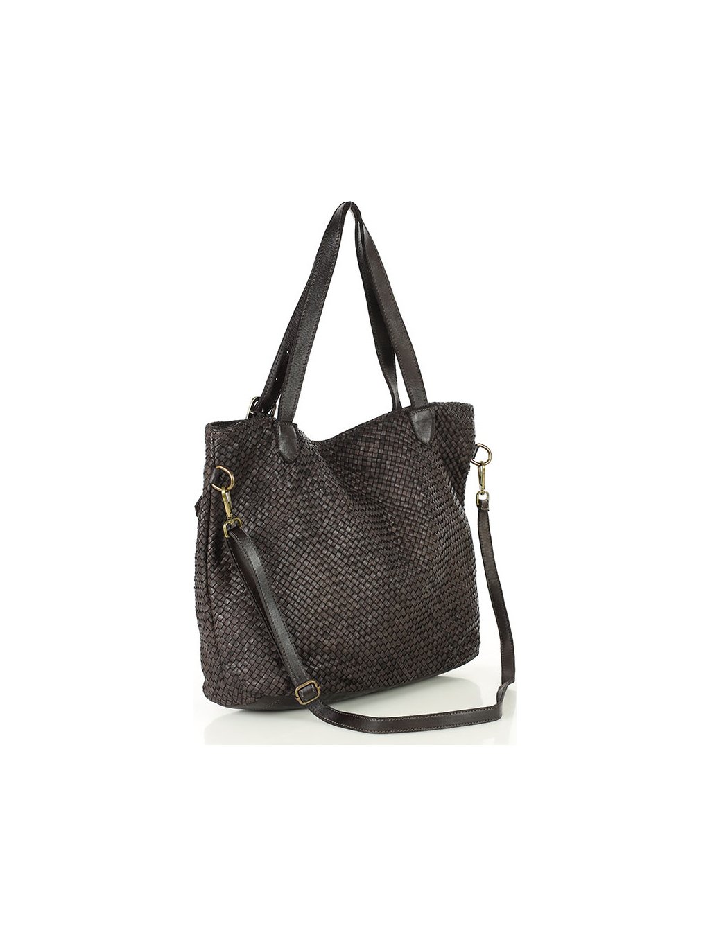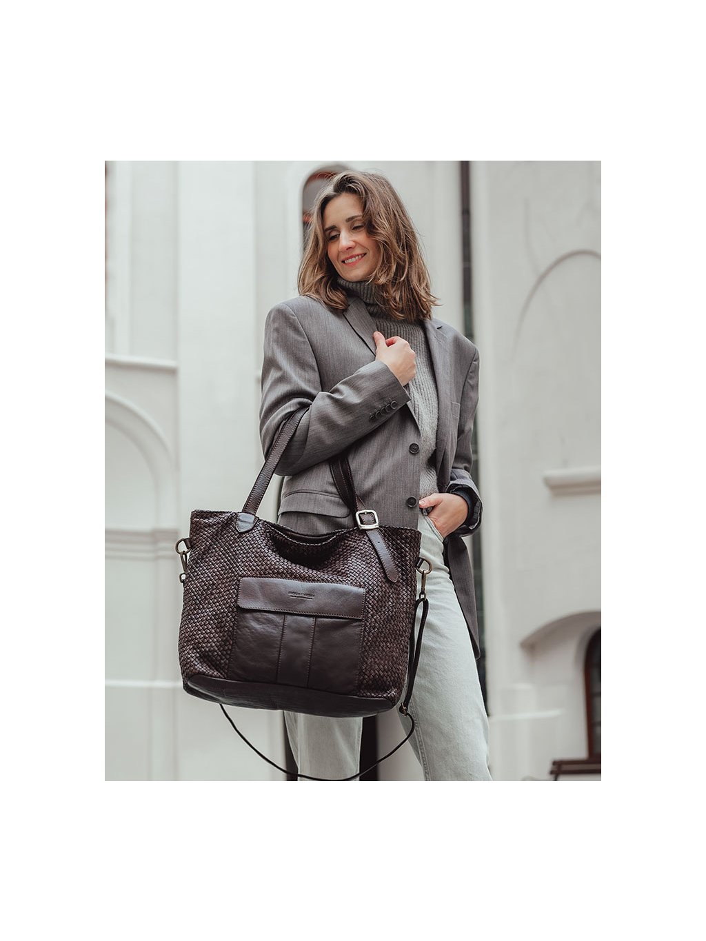 MARCO MAZZINI Veľká tmavohnedá tkaná kabelka