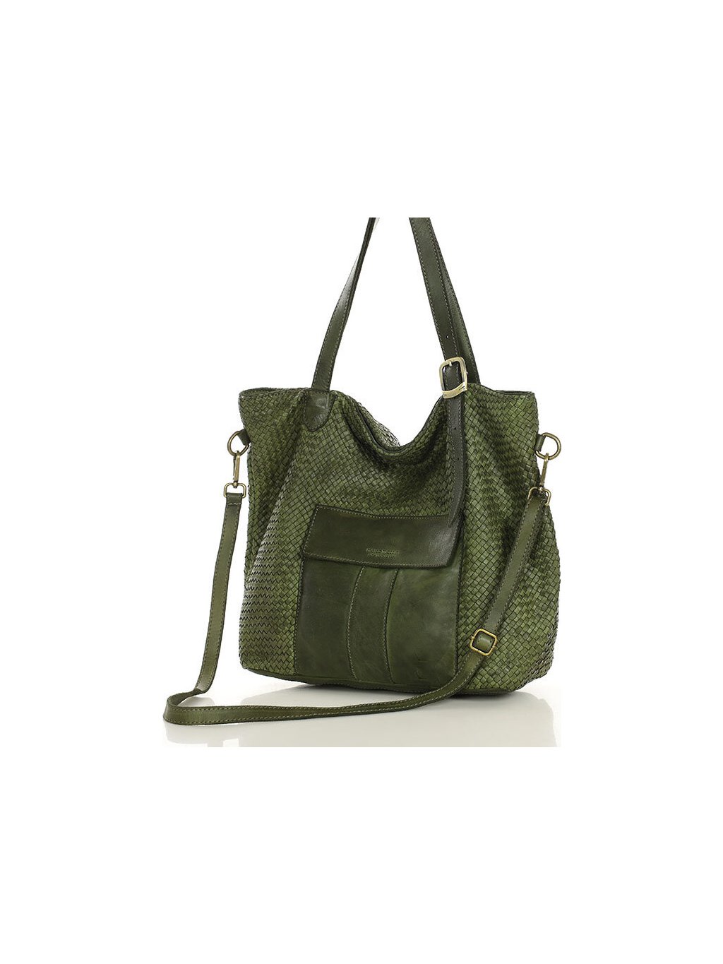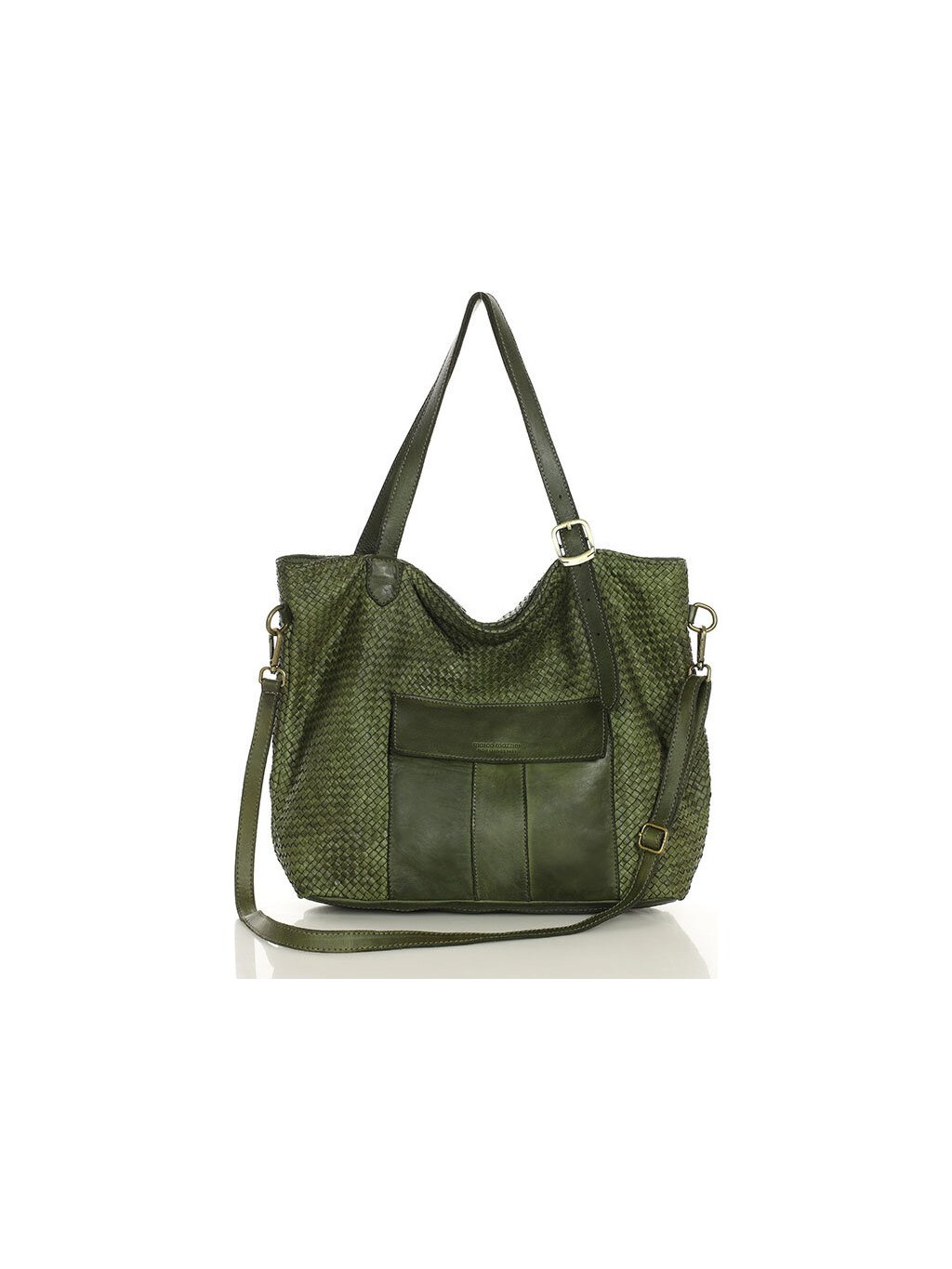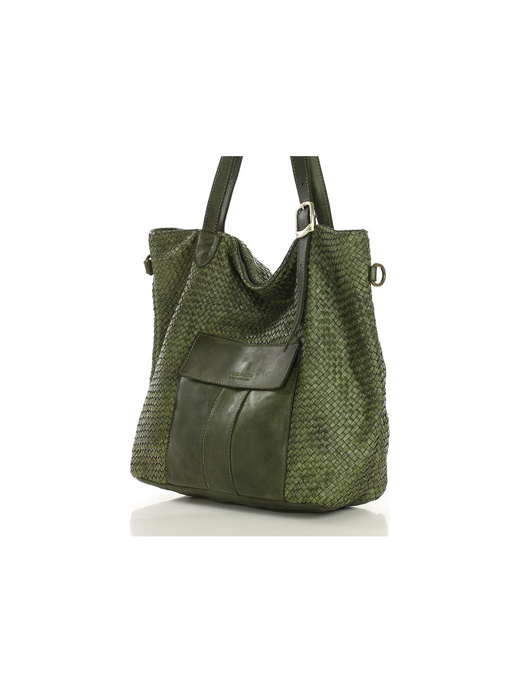 MARCO MAZZINI Veľká tmavozelená tkaná kabelka