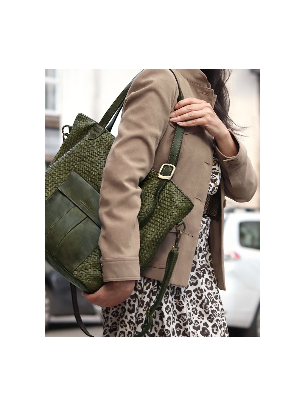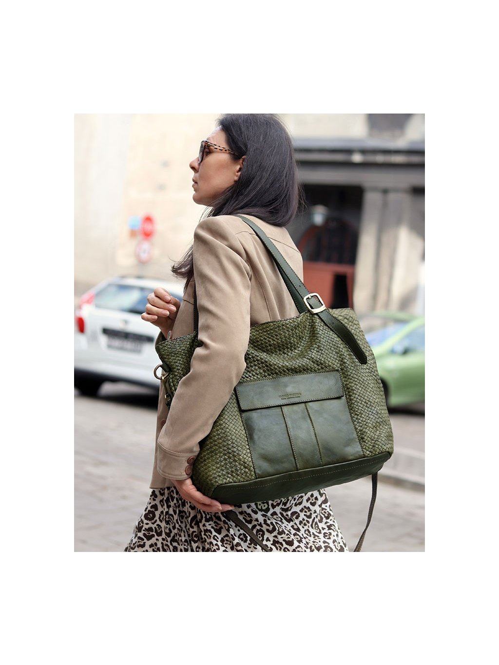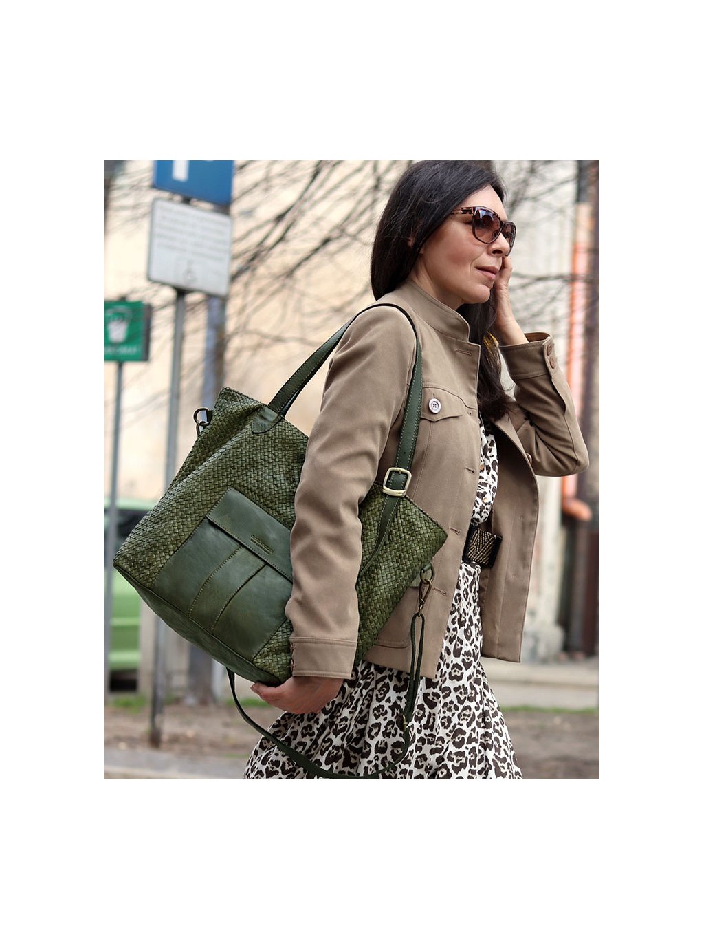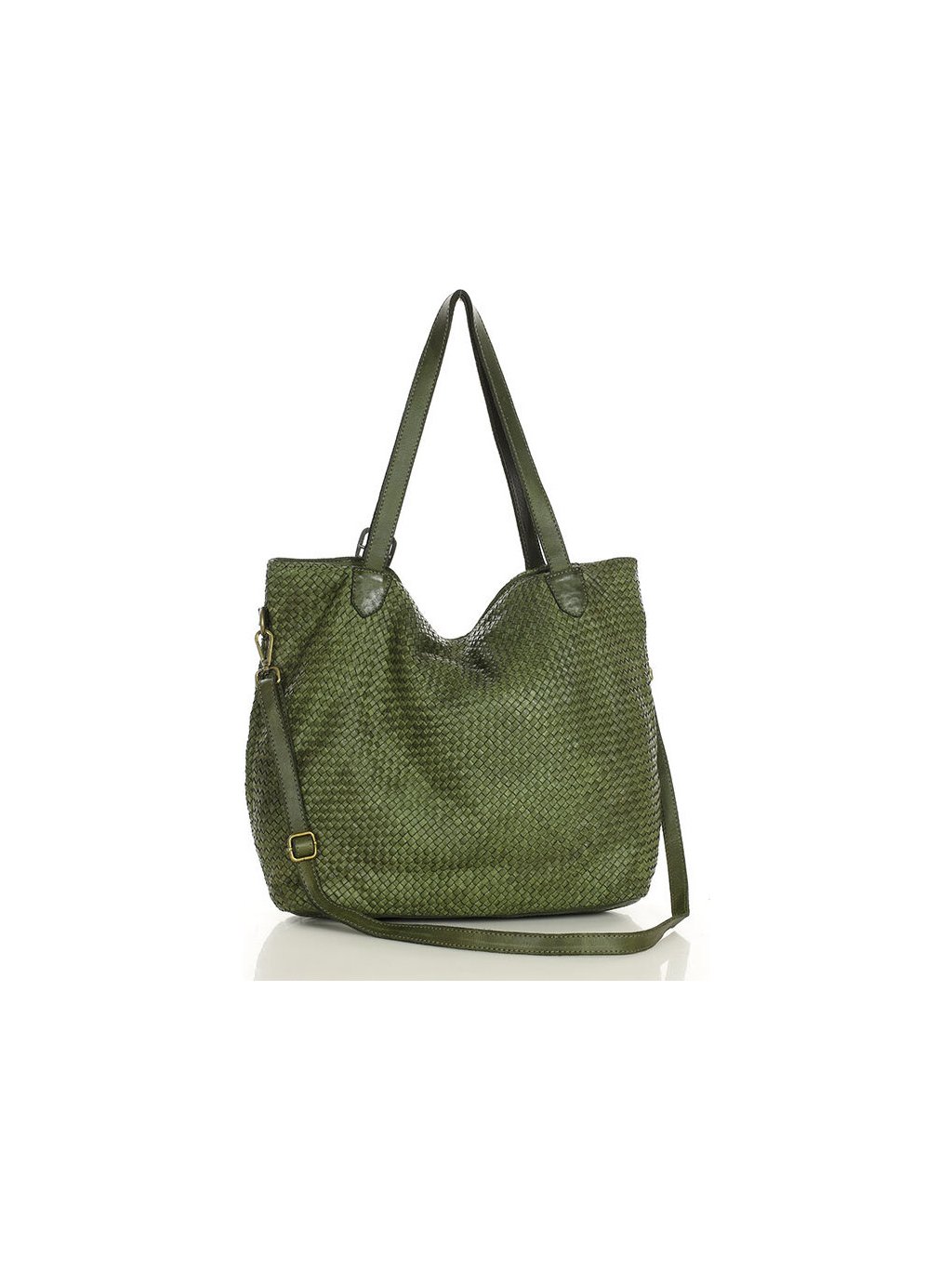 MARCO MAZZINI Veľká tmavozelená tkaná kabelka