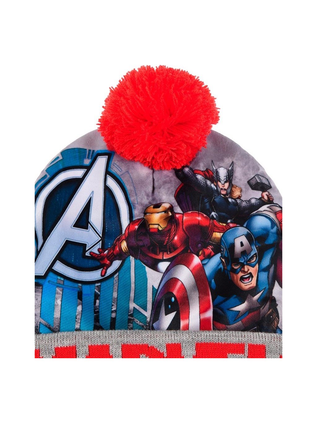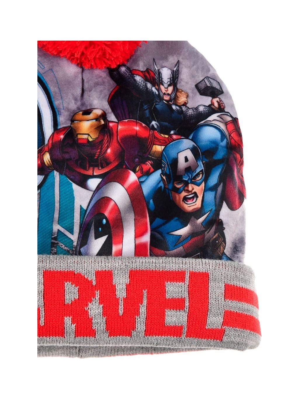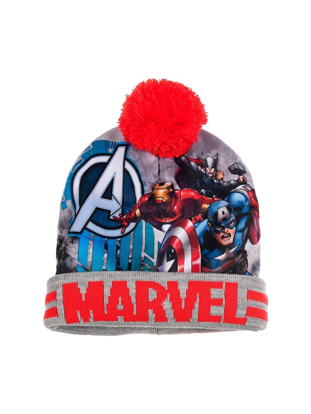 Marvel warm Avengers červeno-sivá chlapčenská čiapka s brmbolcom