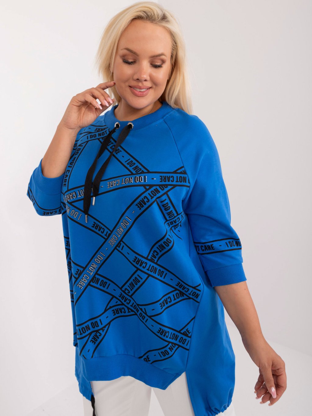 Modrá mikinová tunika s potlačou a 3/4 rukávom