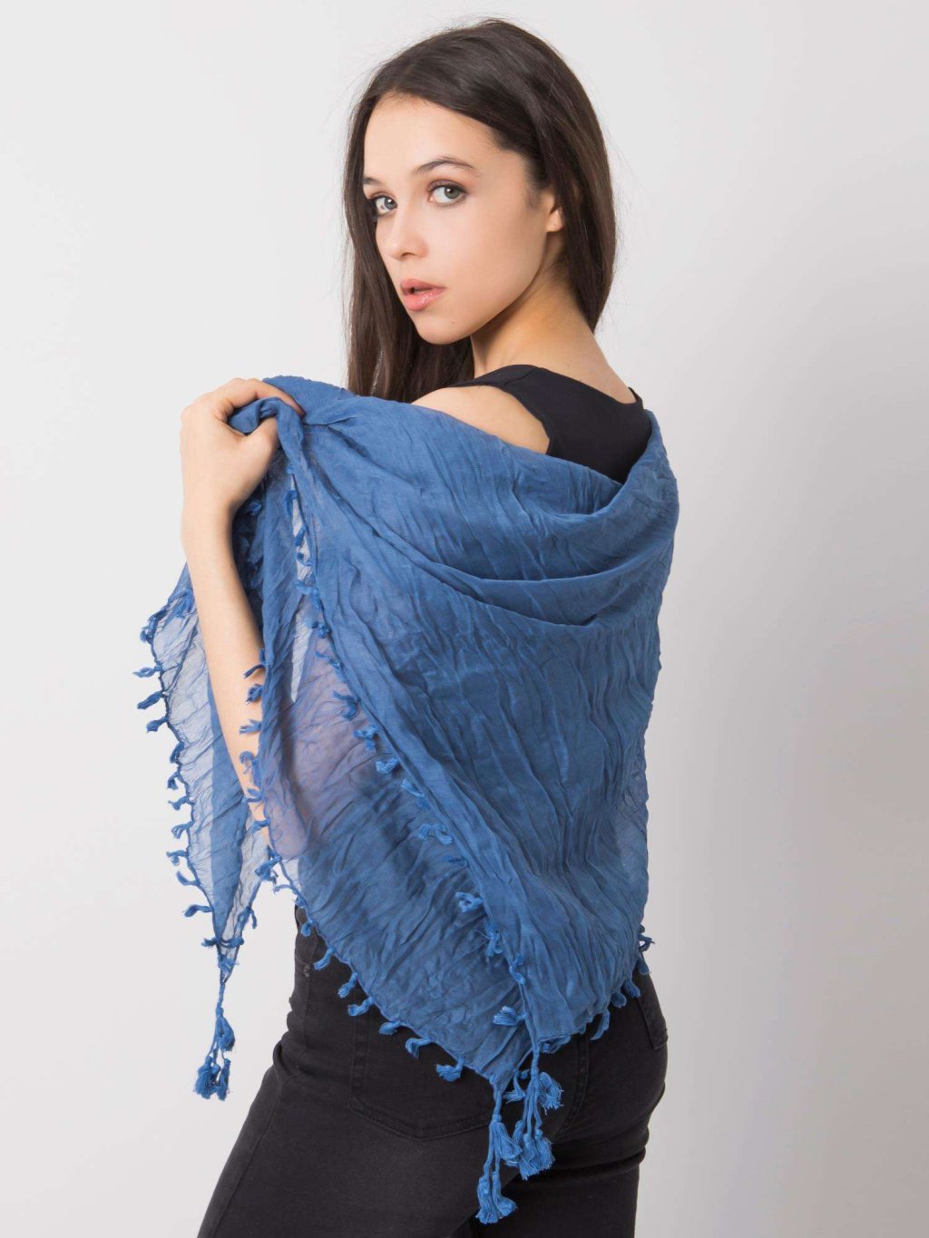 Modrá šatka so strapcami