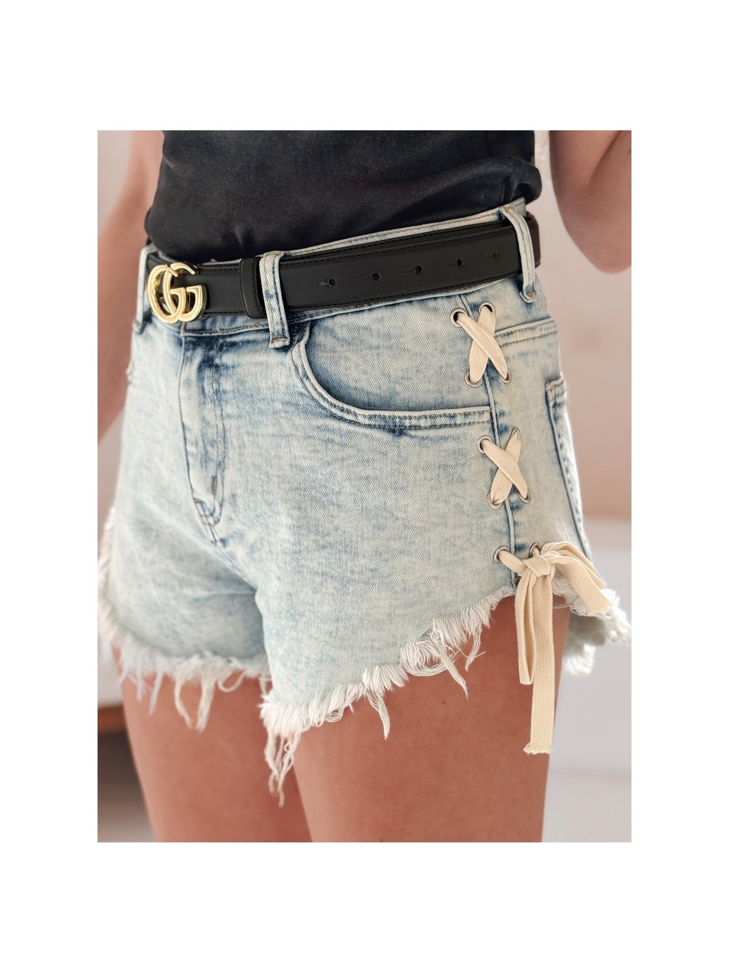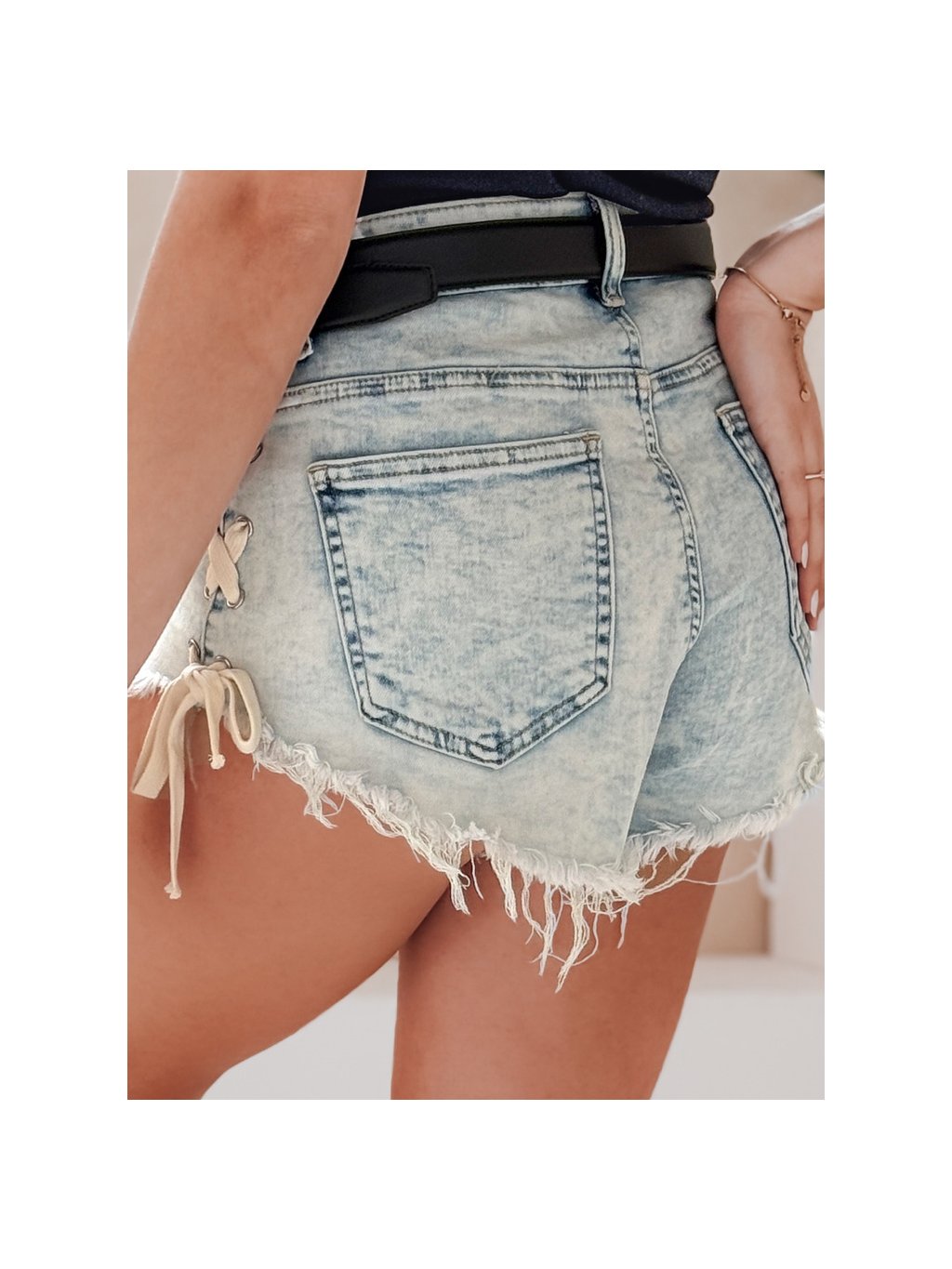 Modré dámske džínsové šortky s viazaním na bokoch COOL SUMMER