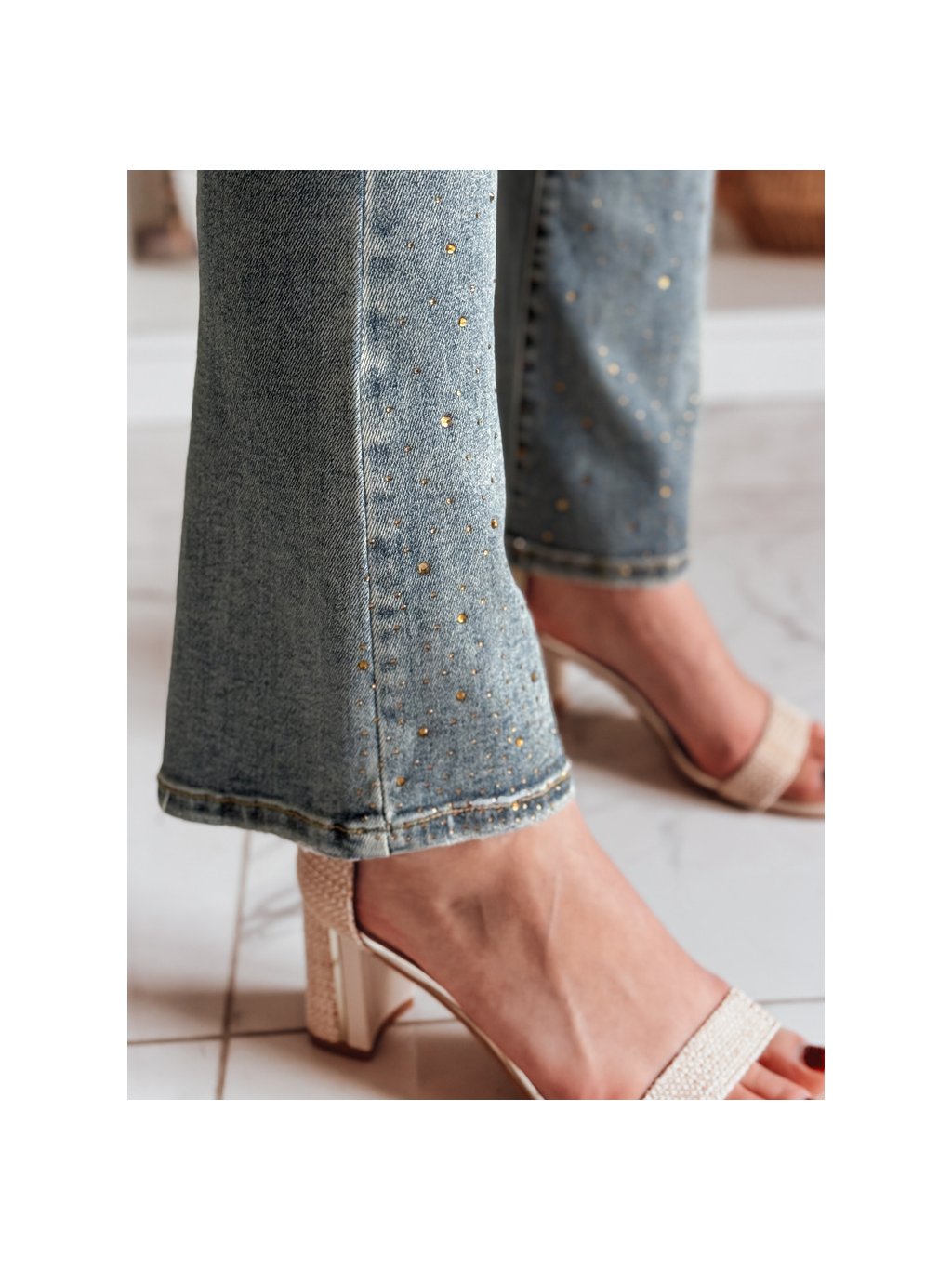 Modré dámske džínsy do zvonu zdobené kamienkami BLINKFIT
