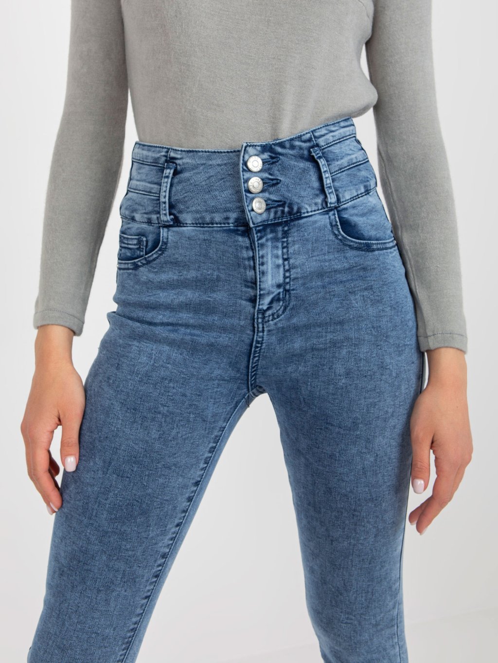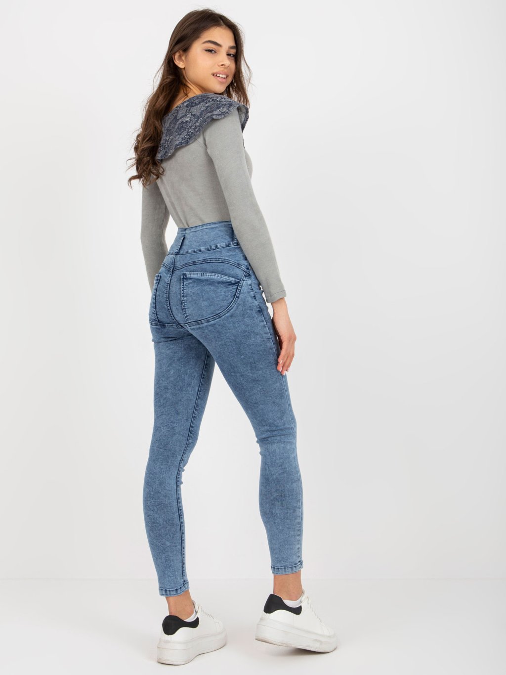 Modré džínsové nohavice s vysokým pásom