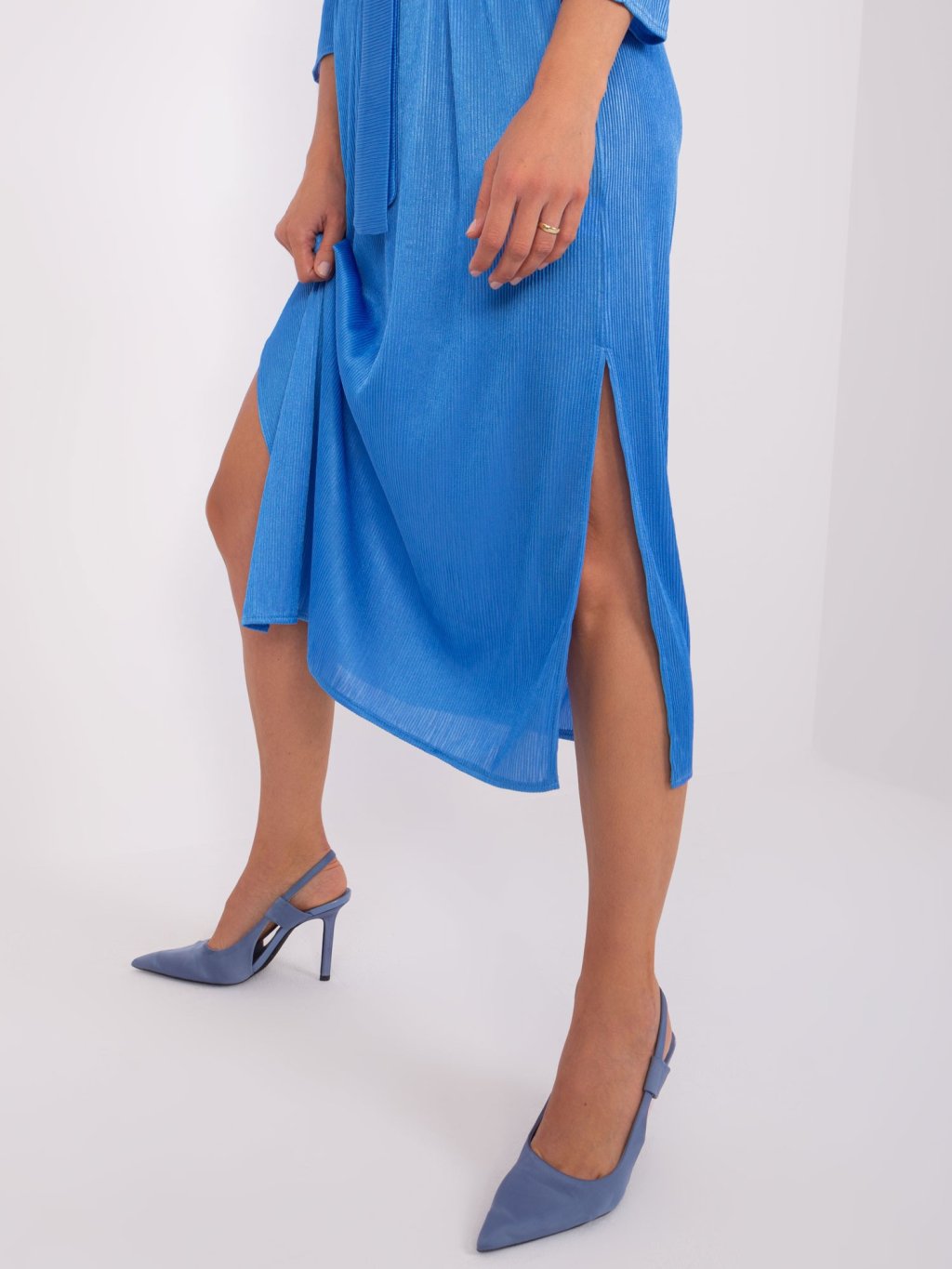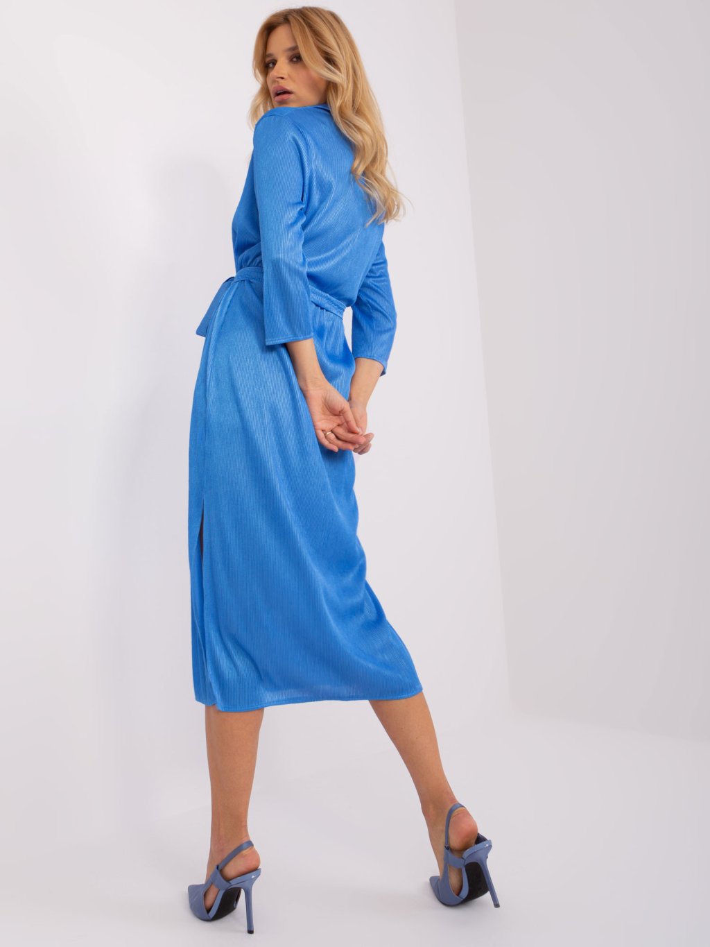 Modré midi šaty s pásikom