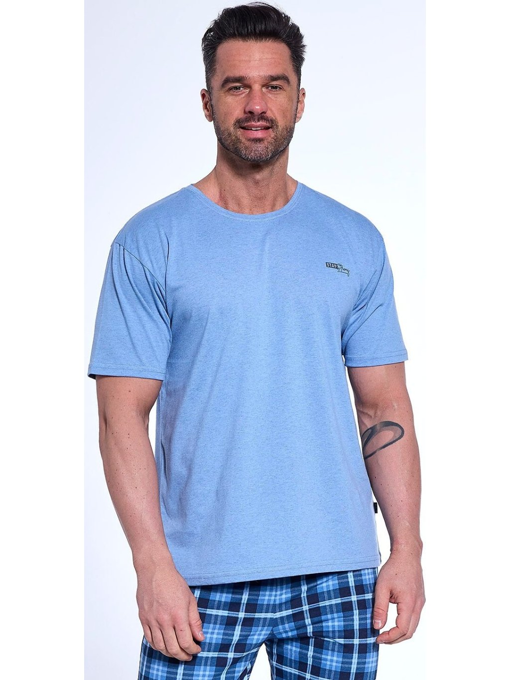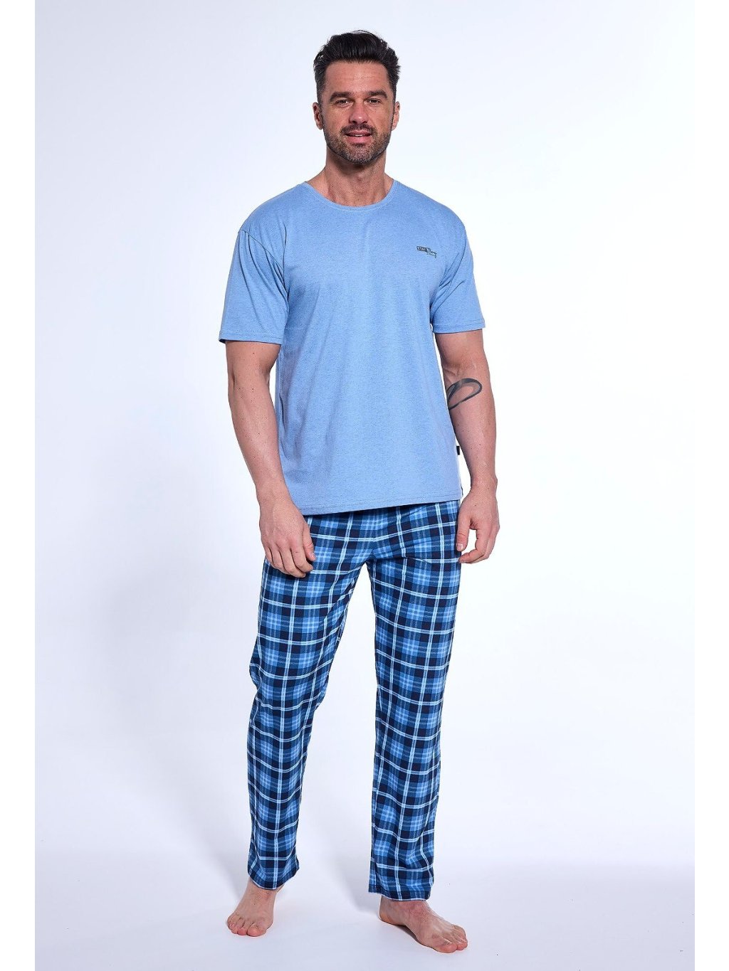 Modré pánske dlhé pyžamo s károvanými nohavicami Cornette Strong