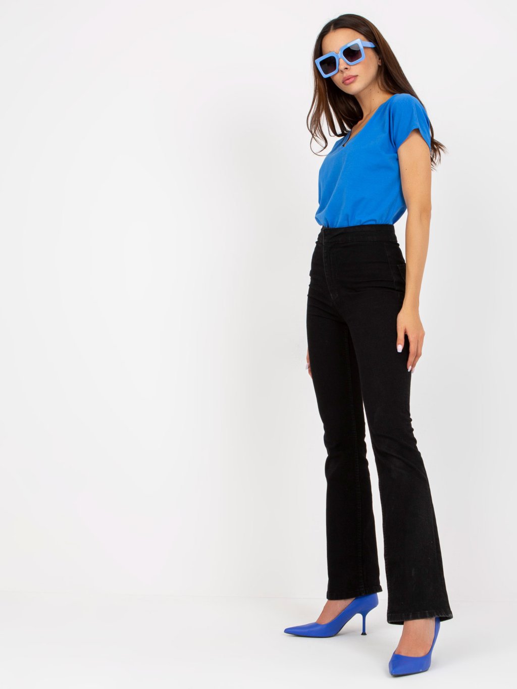 Modré tričko s výstrihom do V