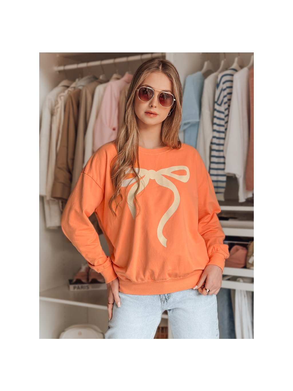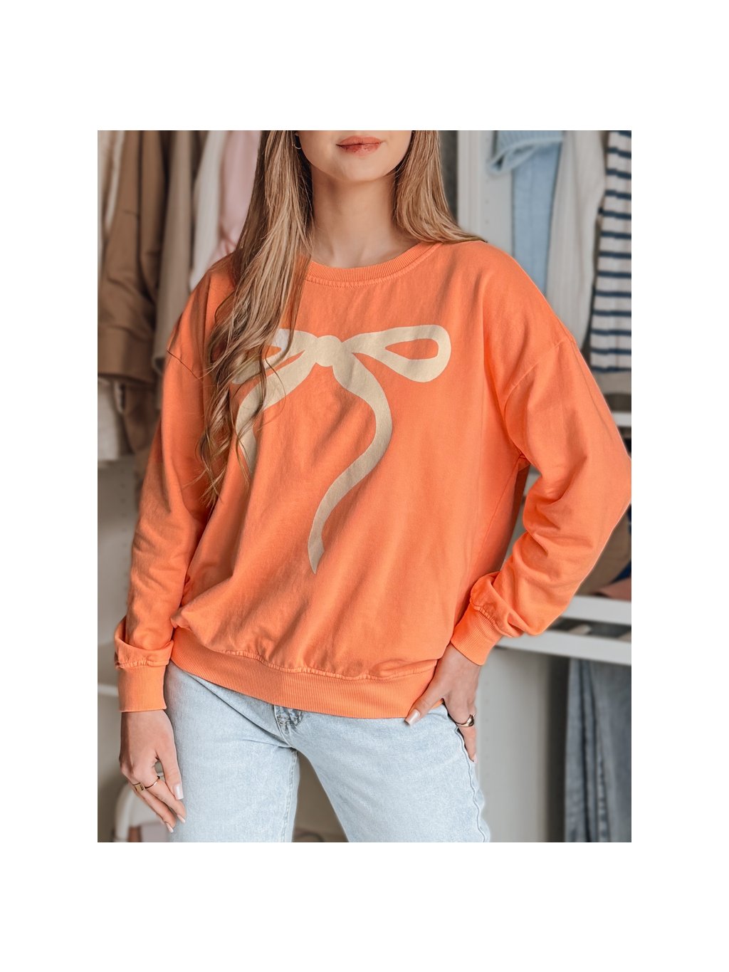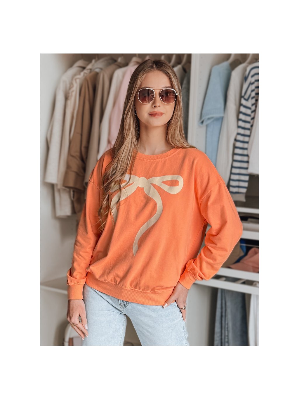 Oranžová dámska mikina s okúzľujúcou potlačou mašle SOFTTIE
