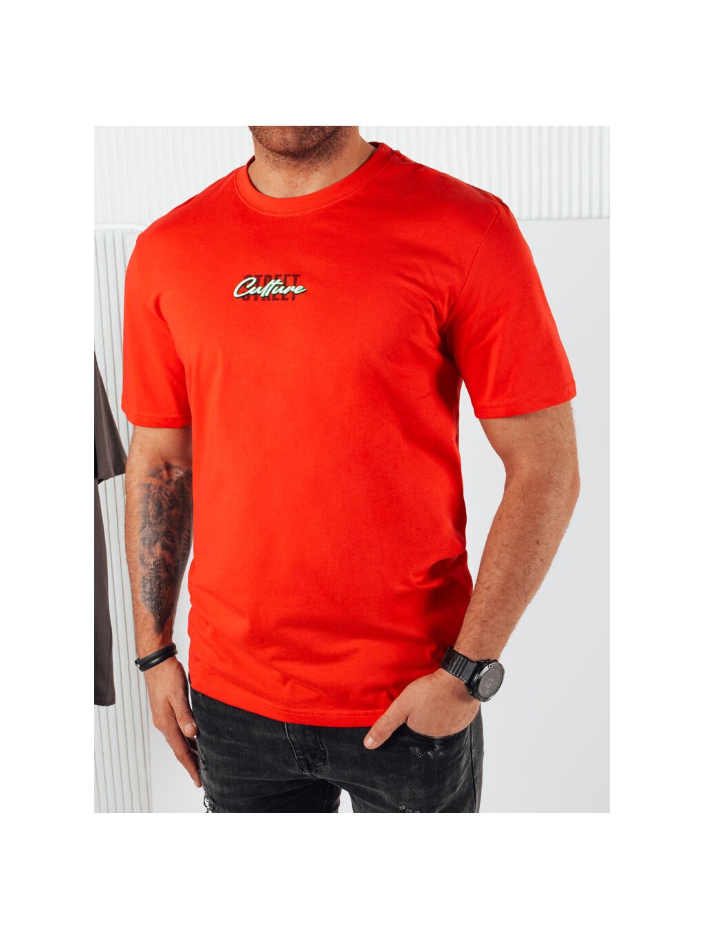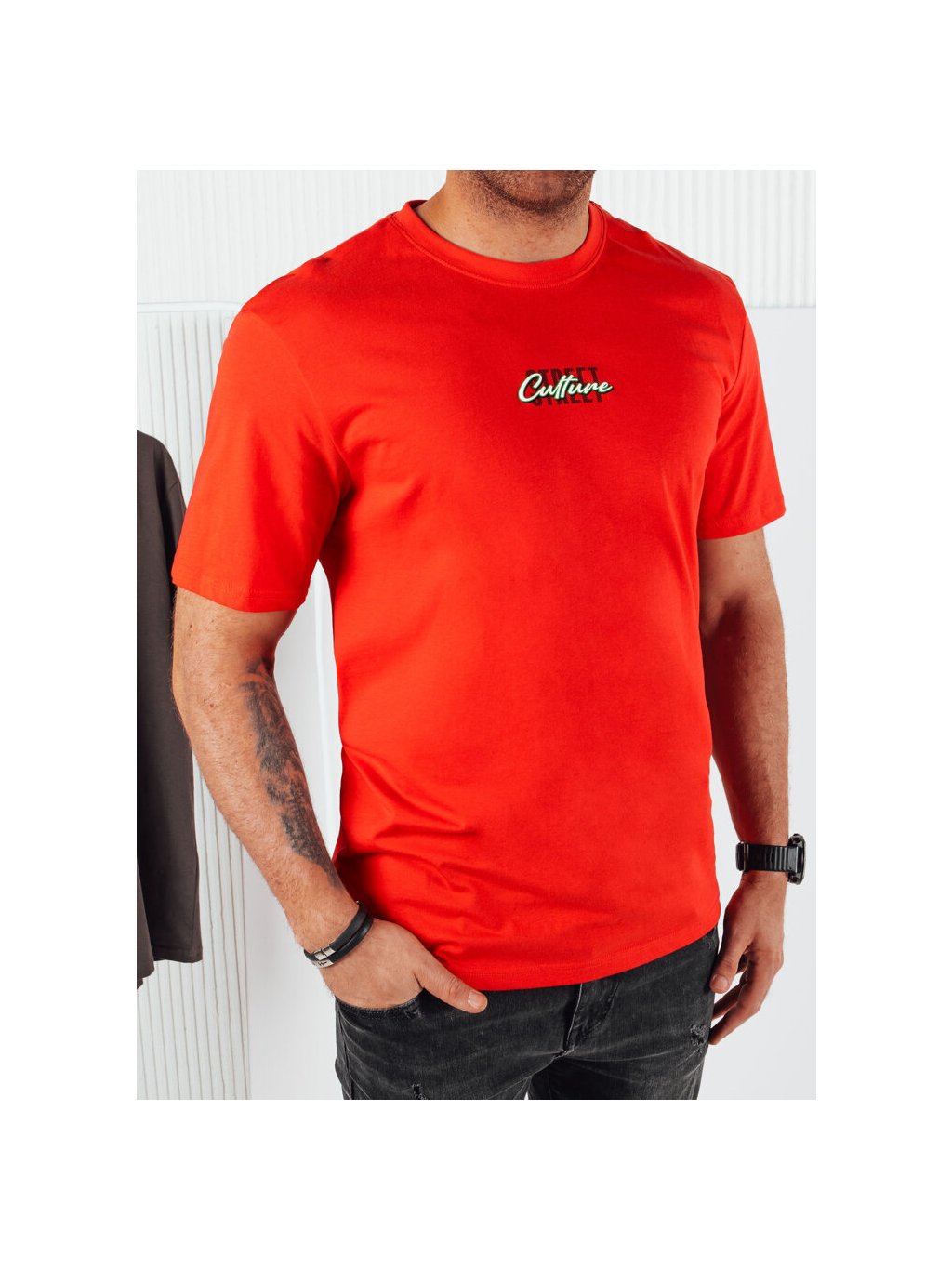 Červené tričko s drobnou potlačou