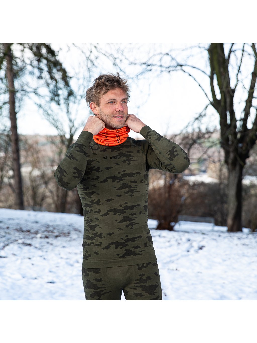 Oranžový pánsky multifunkčný šál s poľovníckou potlačou