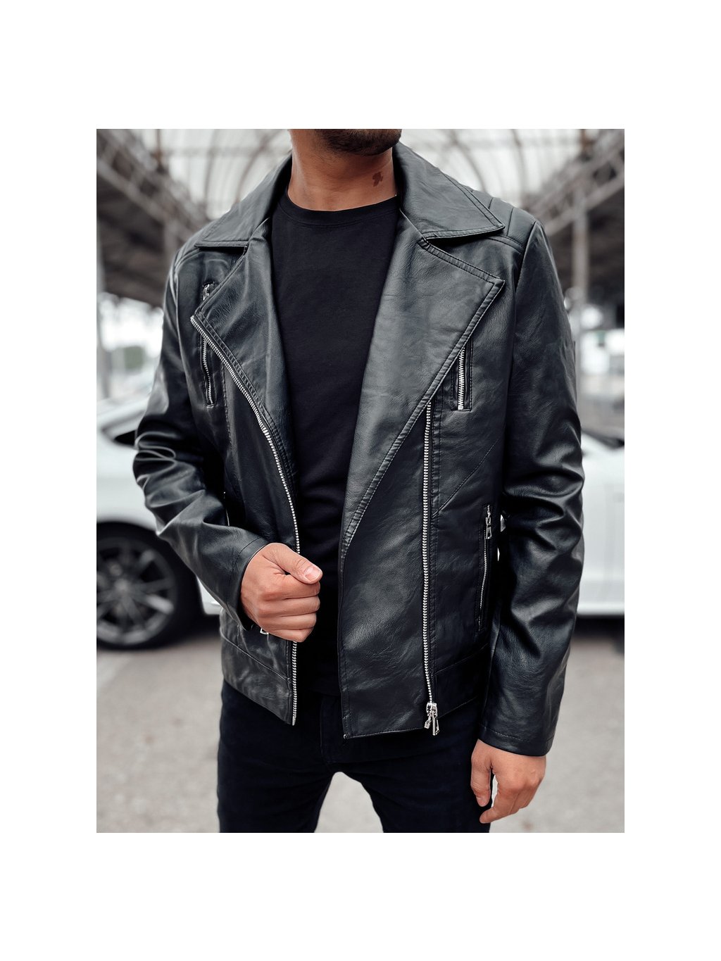Pánska čierna koženková bunda