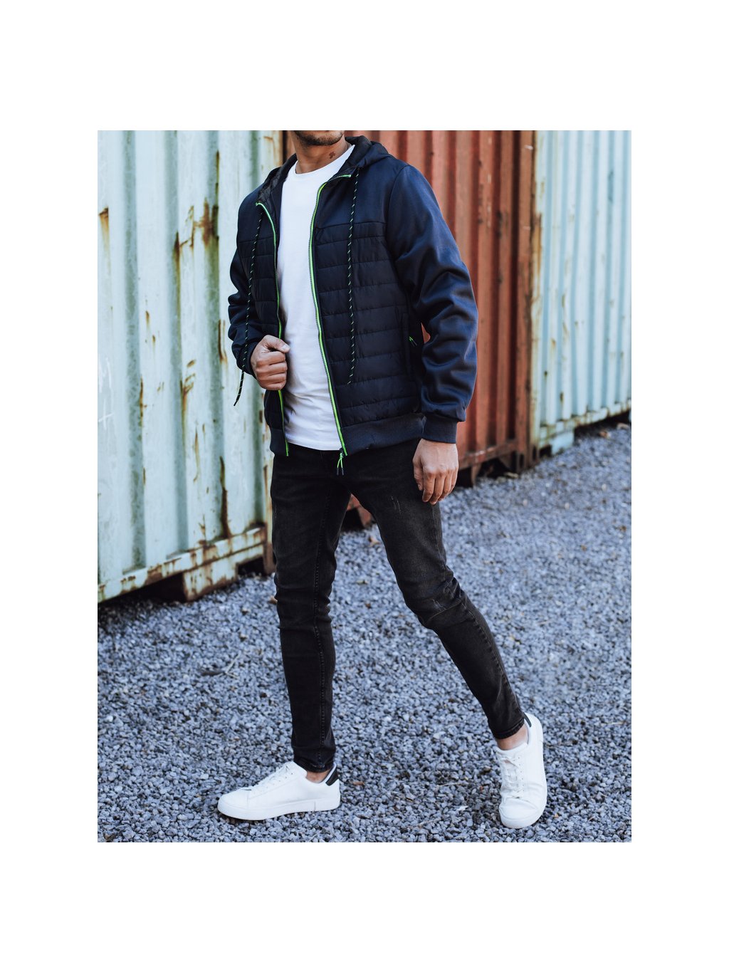 Pánska tmavomodrá prechodná bunda s kapucňou