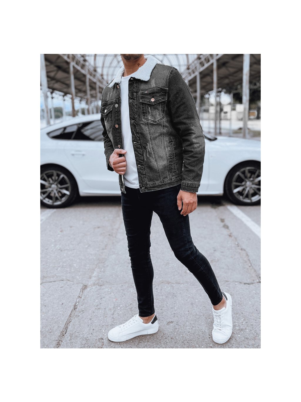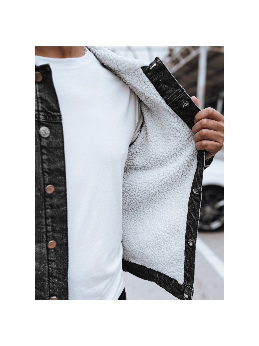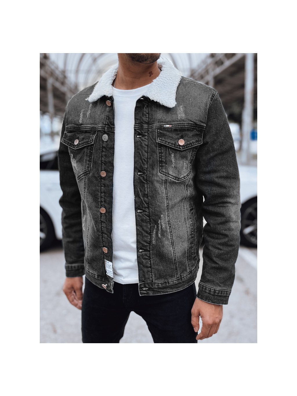Pánska zateplená čierna džínsová bunda