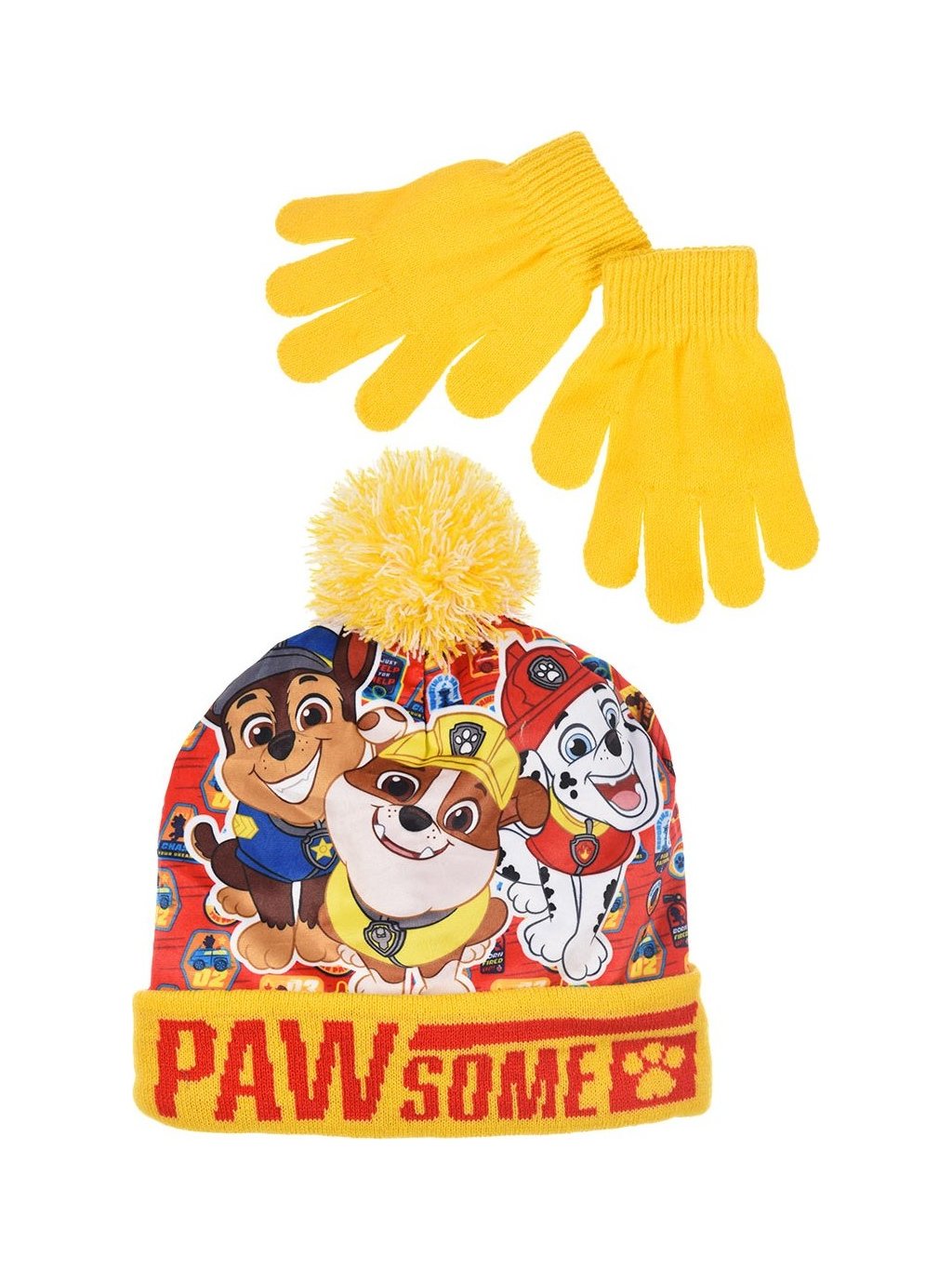 Paw Patrol žlto-oranžová sada čiapky a rukavíc