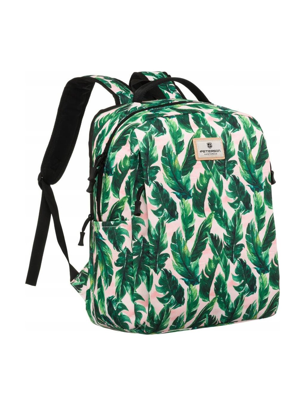 Peterson bielo-zelený priestranný batoh so vzorom listov