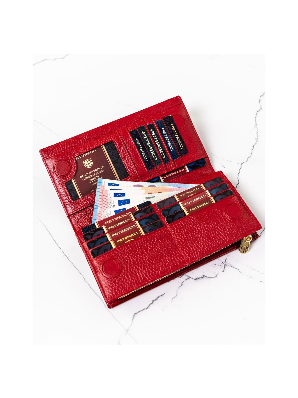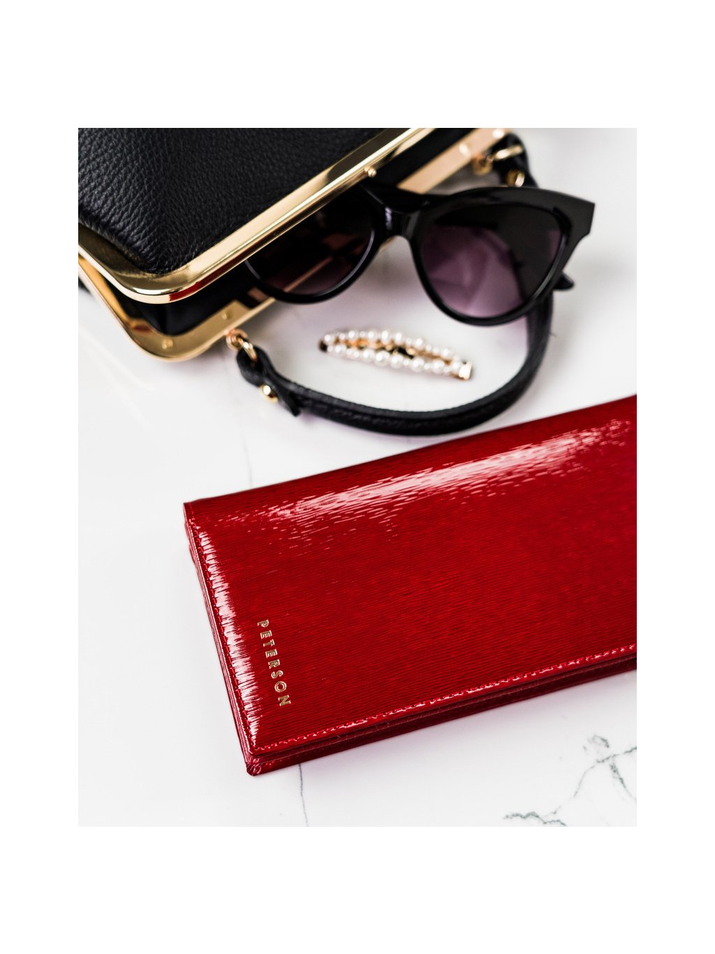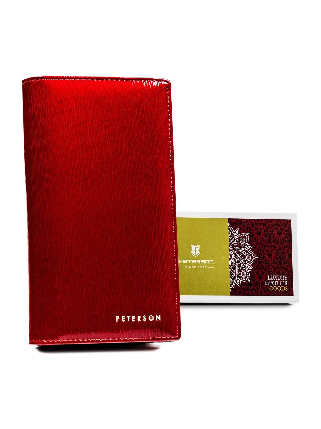 Peterson Červená elegantná lakovaná kožená peňaženka Y382