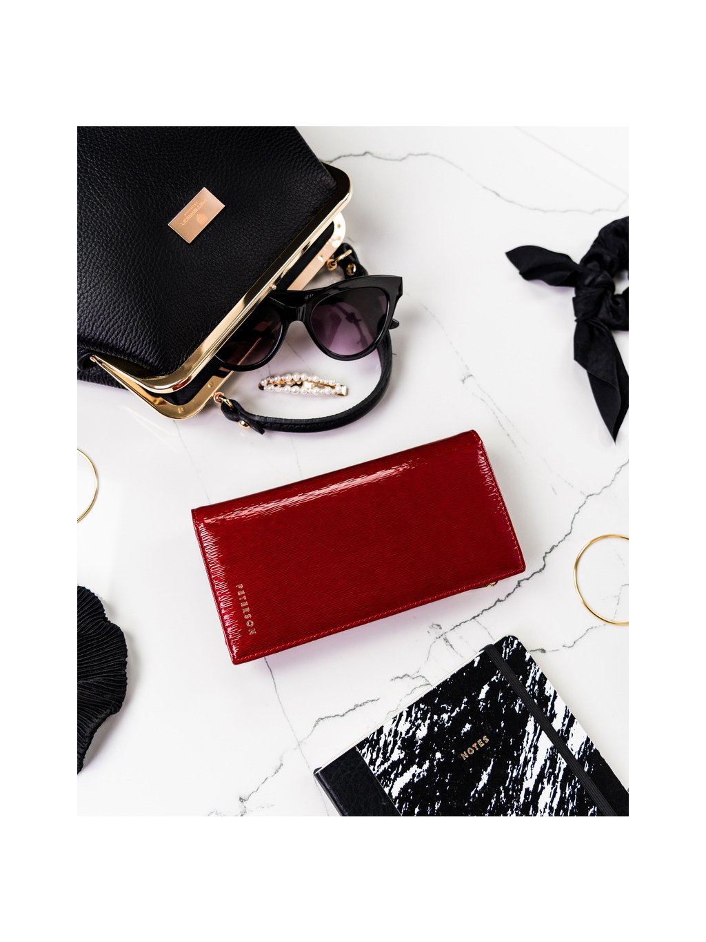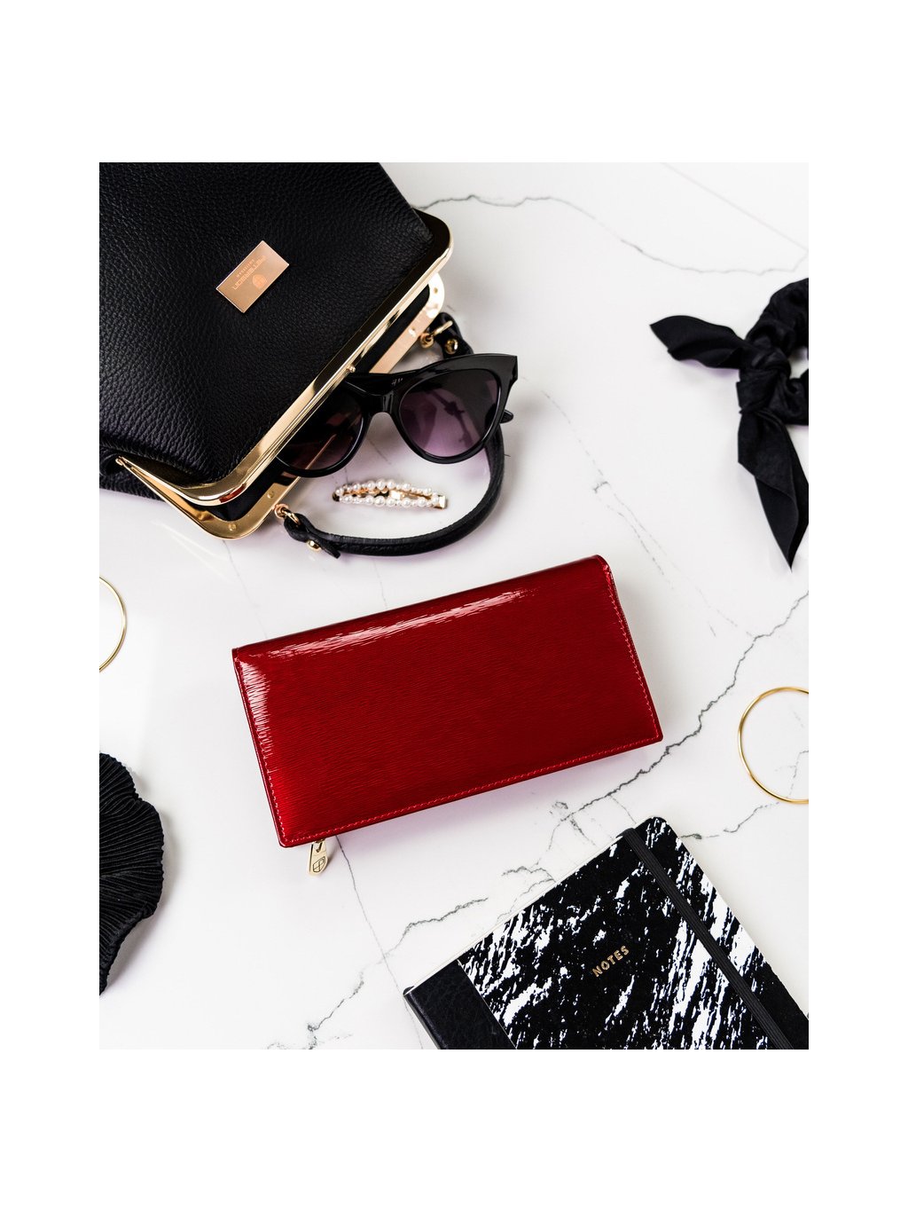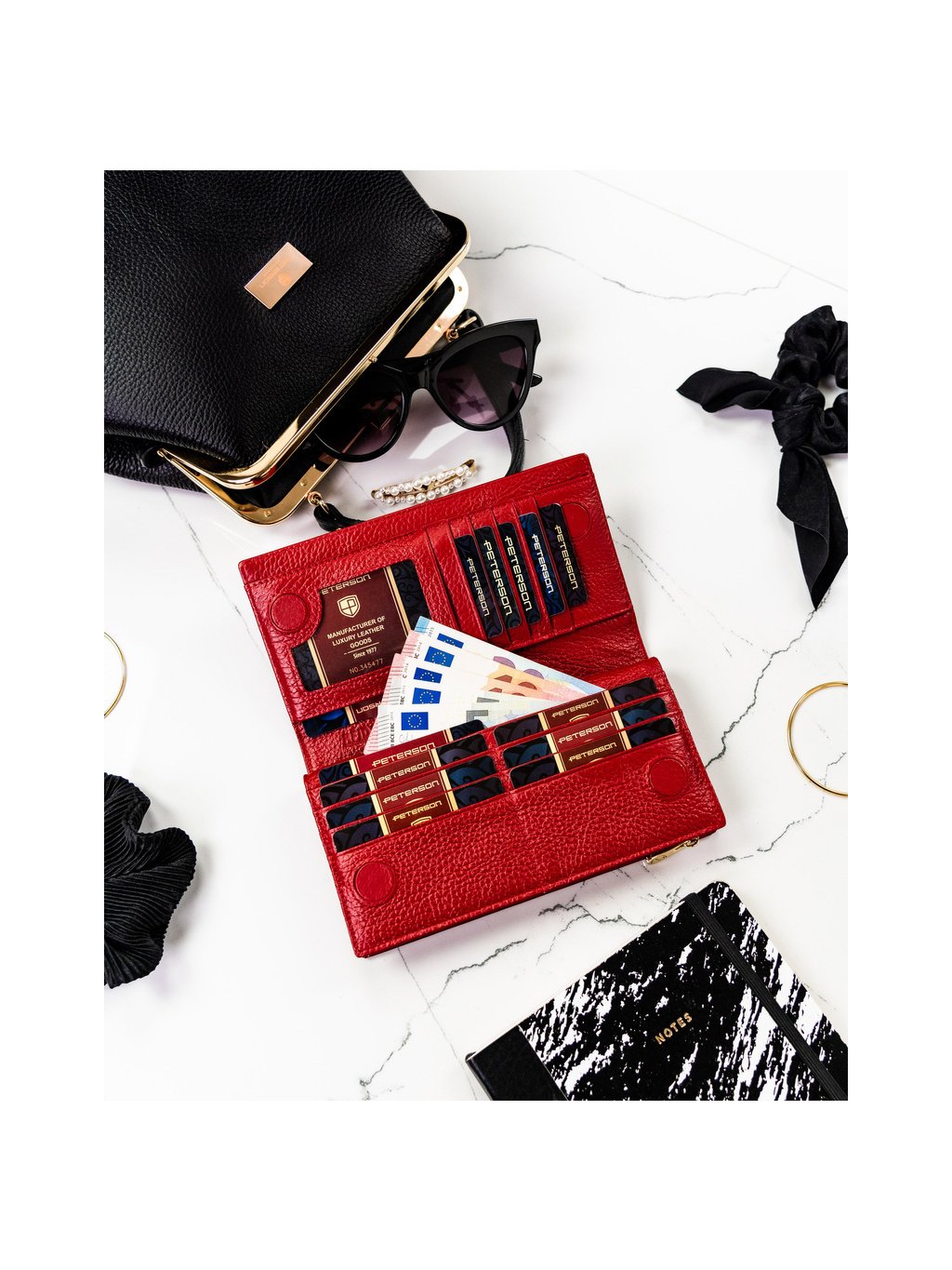 Peterson Červená elegantná lakovaná kožená peňaženka Y382