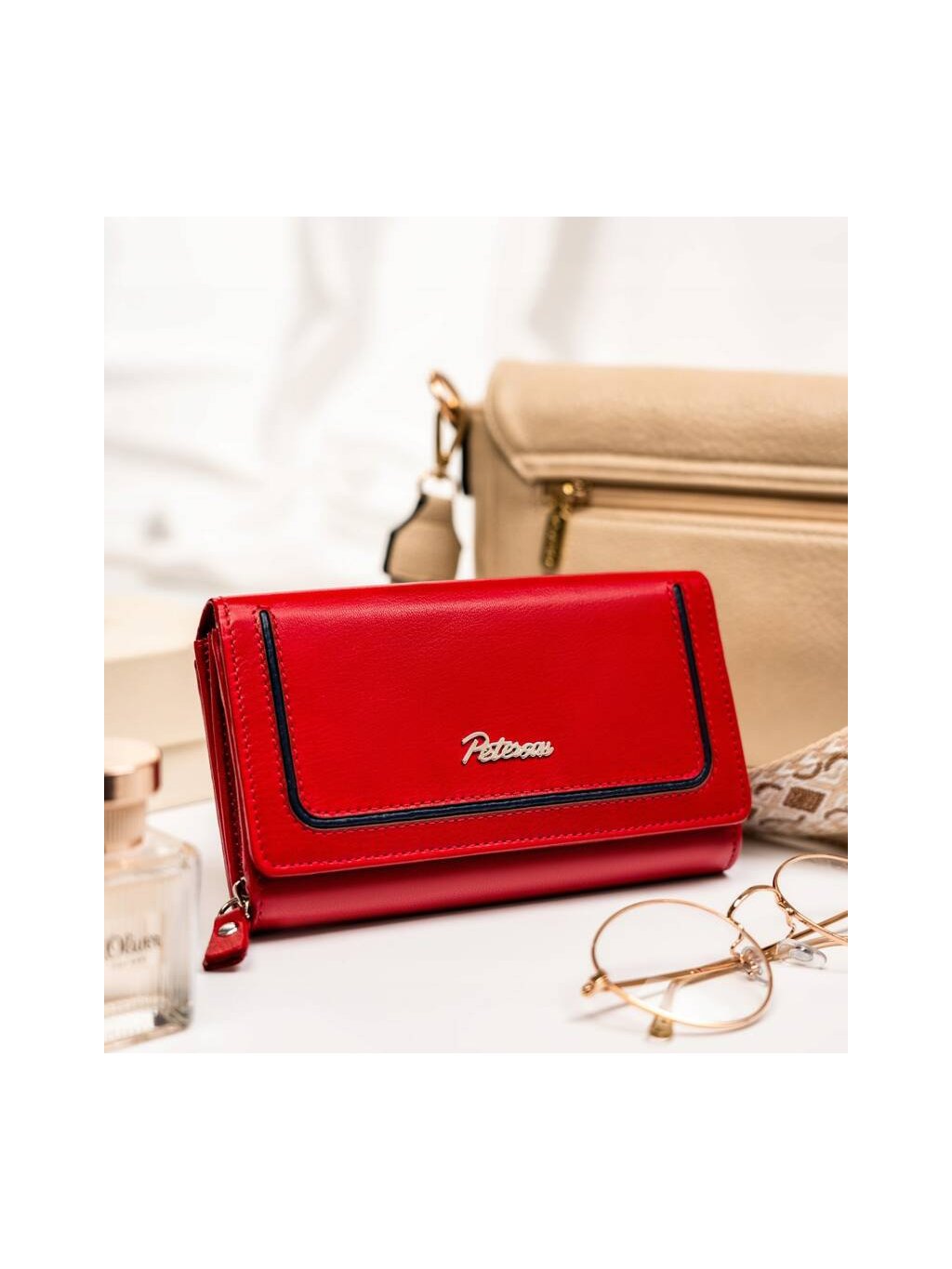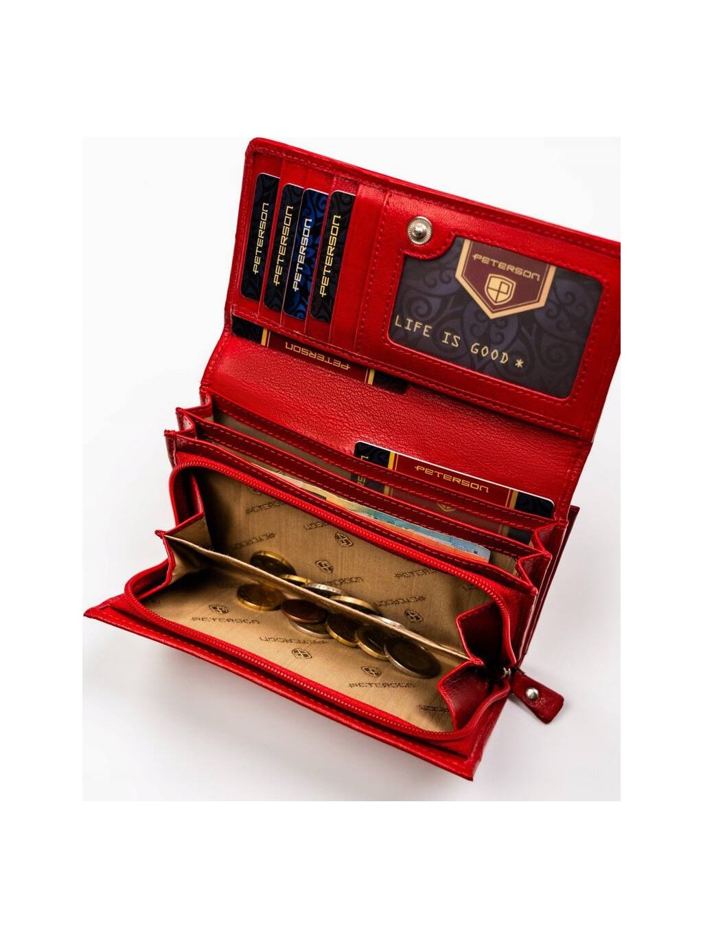 Peterson červená veľká kožená peňaženka Y617
