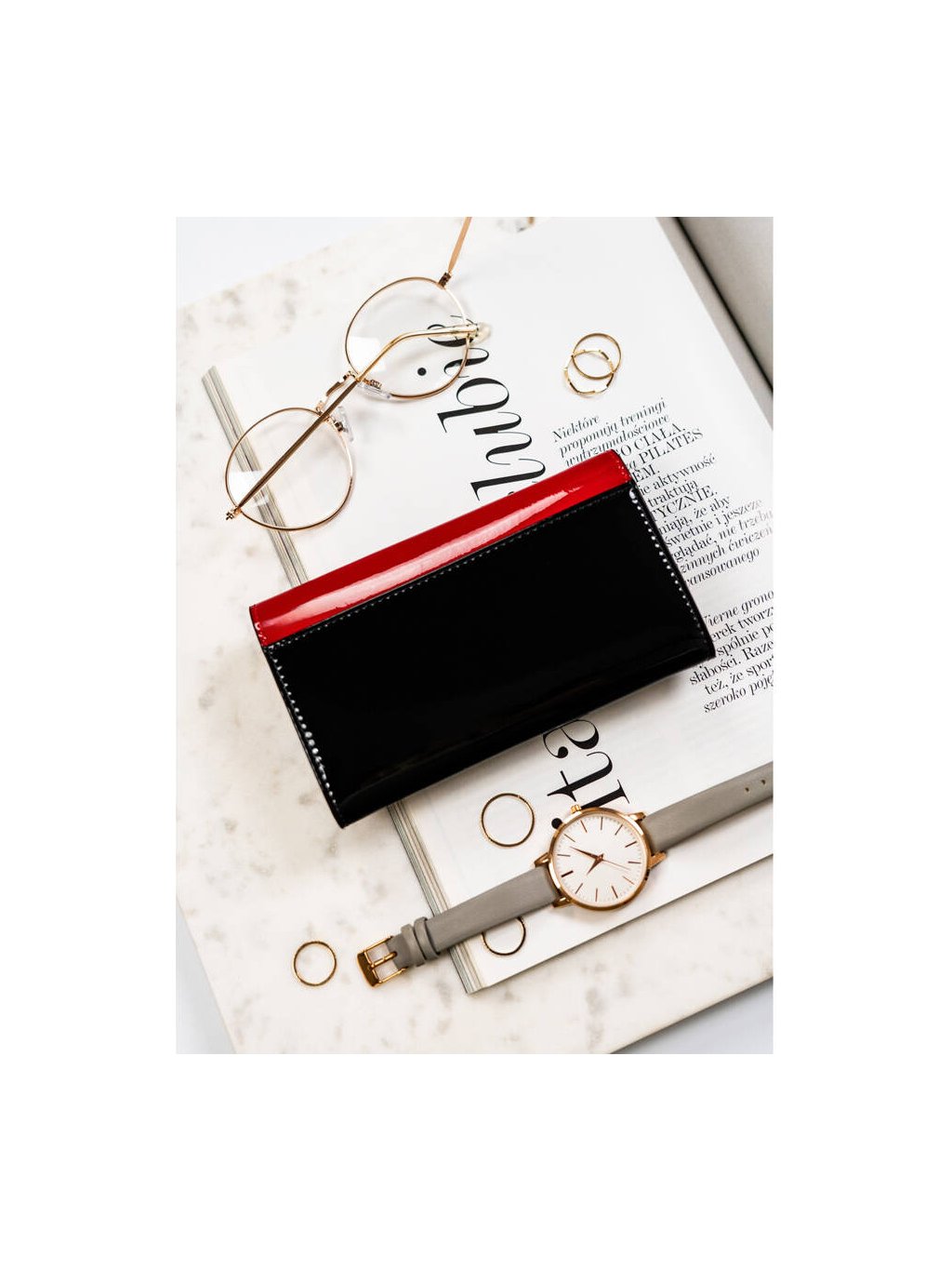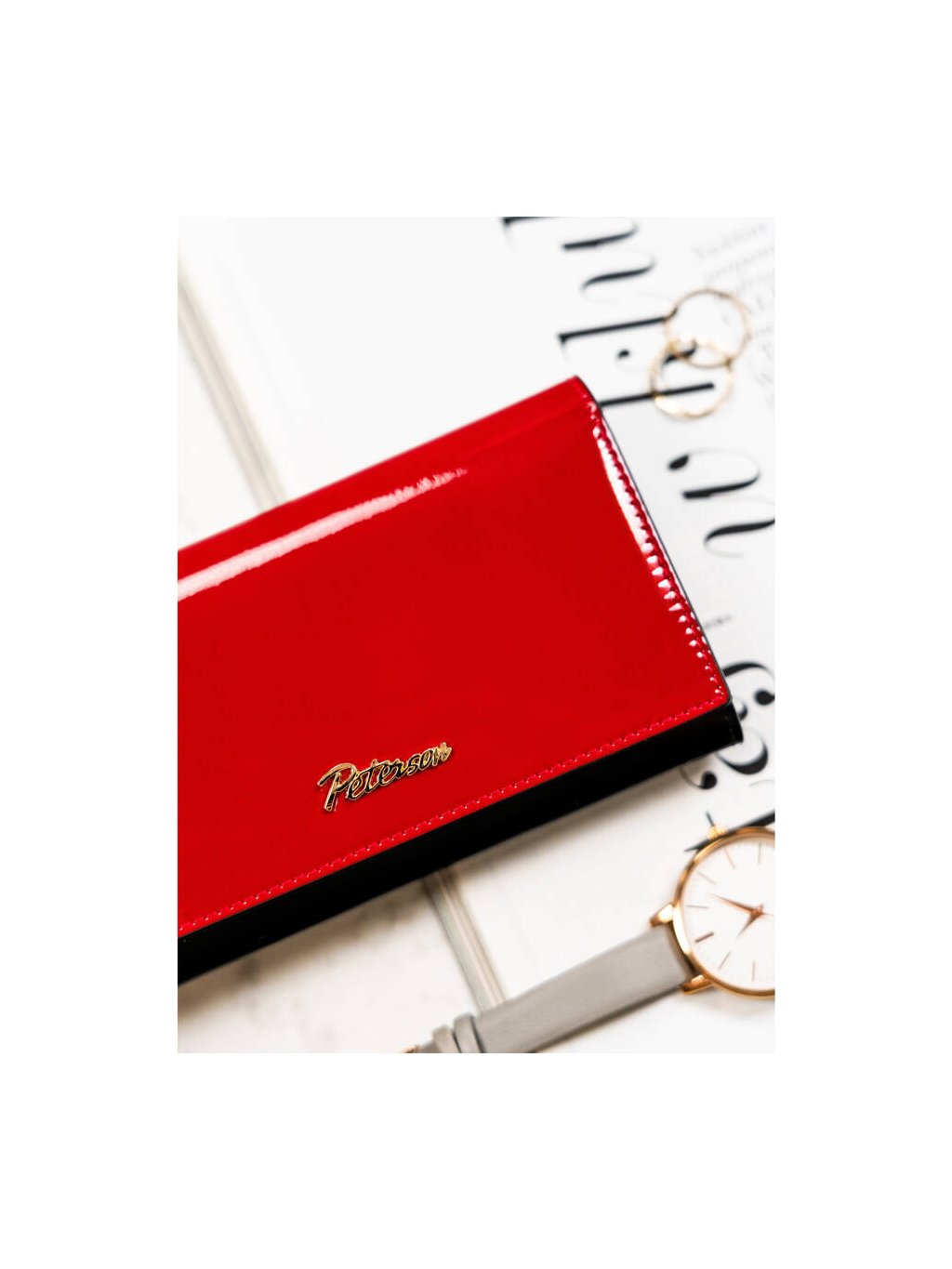 Peterson červeno-čierna peňaženka s lakovanou textúrou Y697