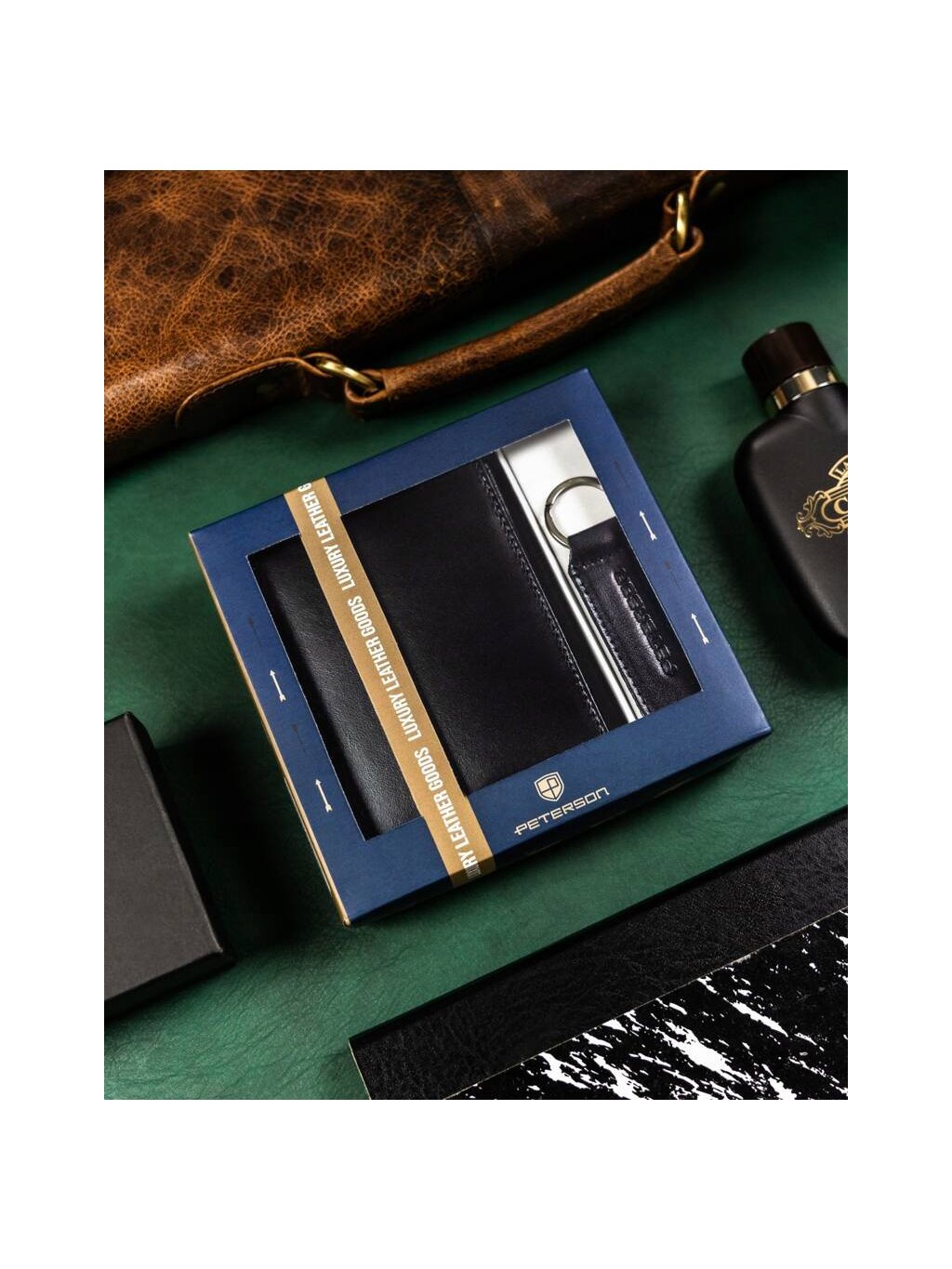 Peterson čierna sada peňaženky a kľúčenky pre mužov I055