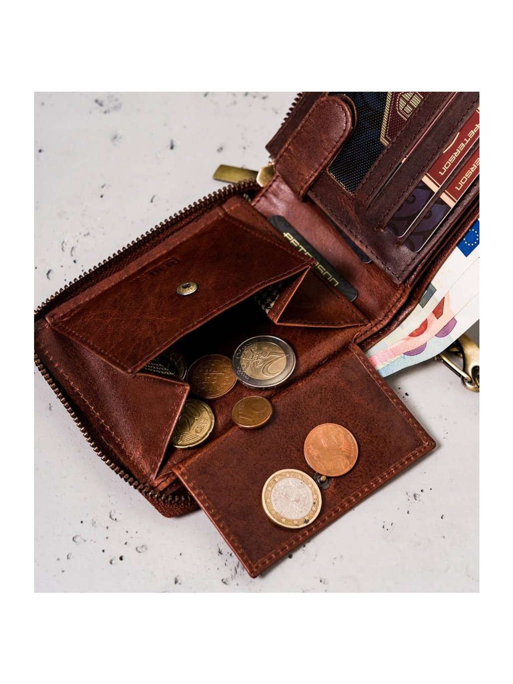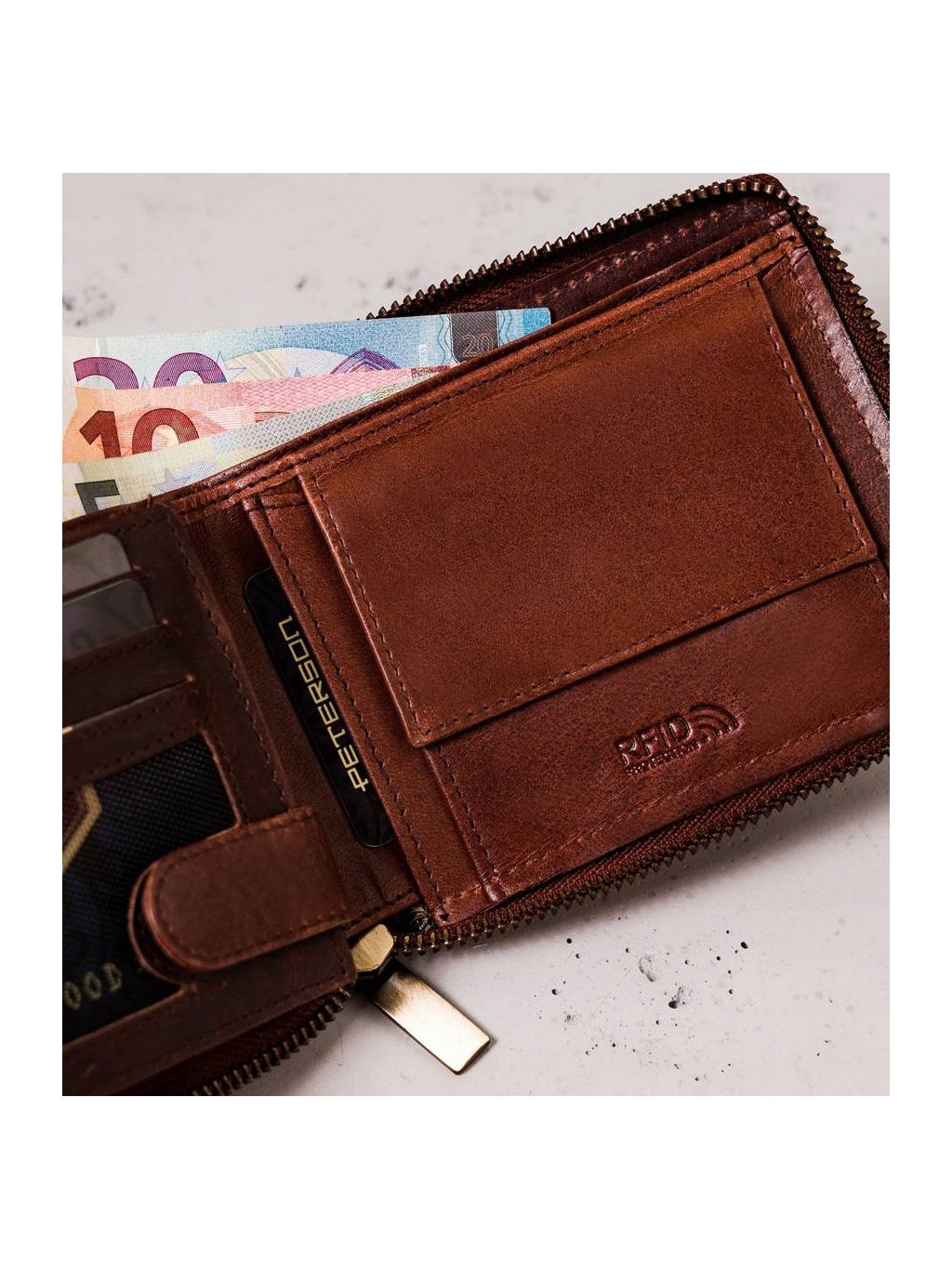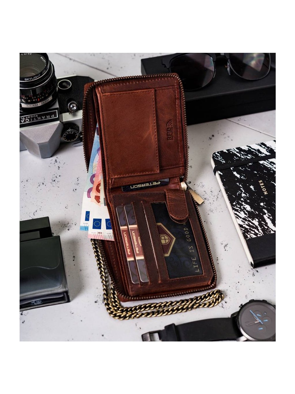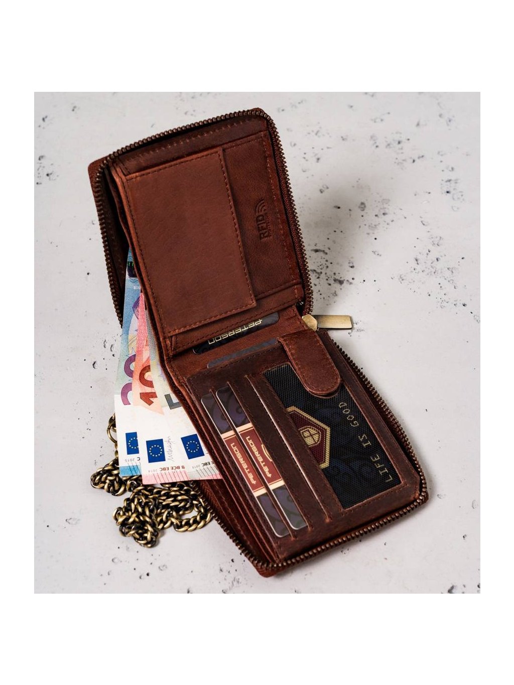 Peterson Peterson Hnedá pánska kožená peňaženka s retiazkou W066