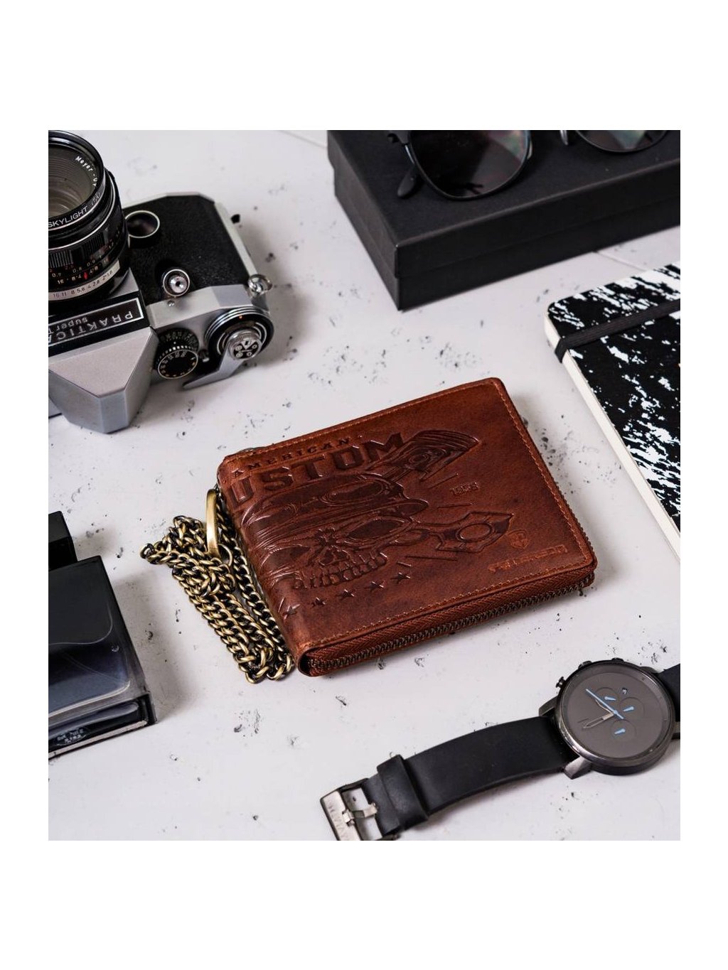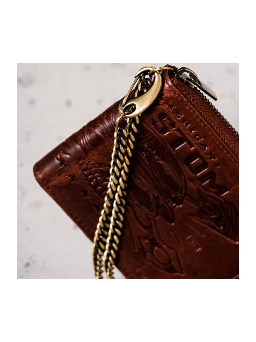 - na povrchu peňaženky je vyrazený vzor lebky