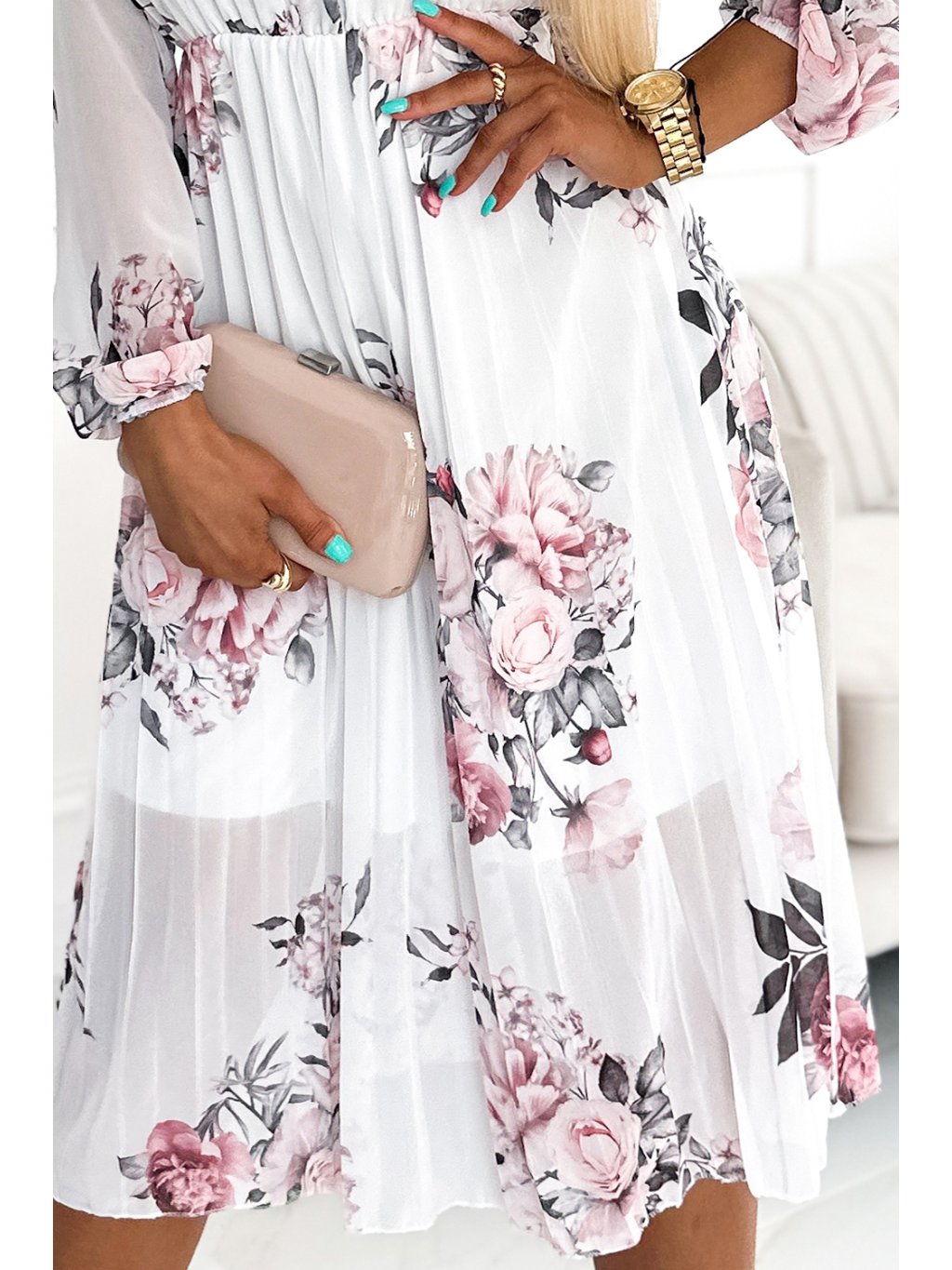 Plisované kvetované midi šaty s gombíkmi a dlhým rukávom JORDAN