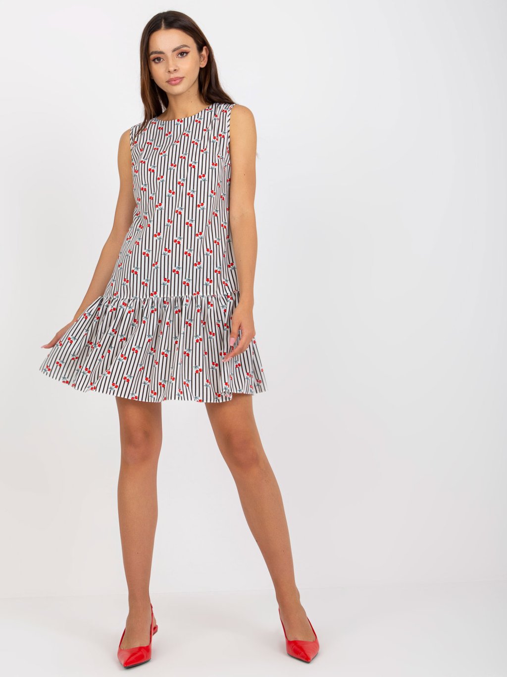 Pruhované šaty so vzorom čerešní
