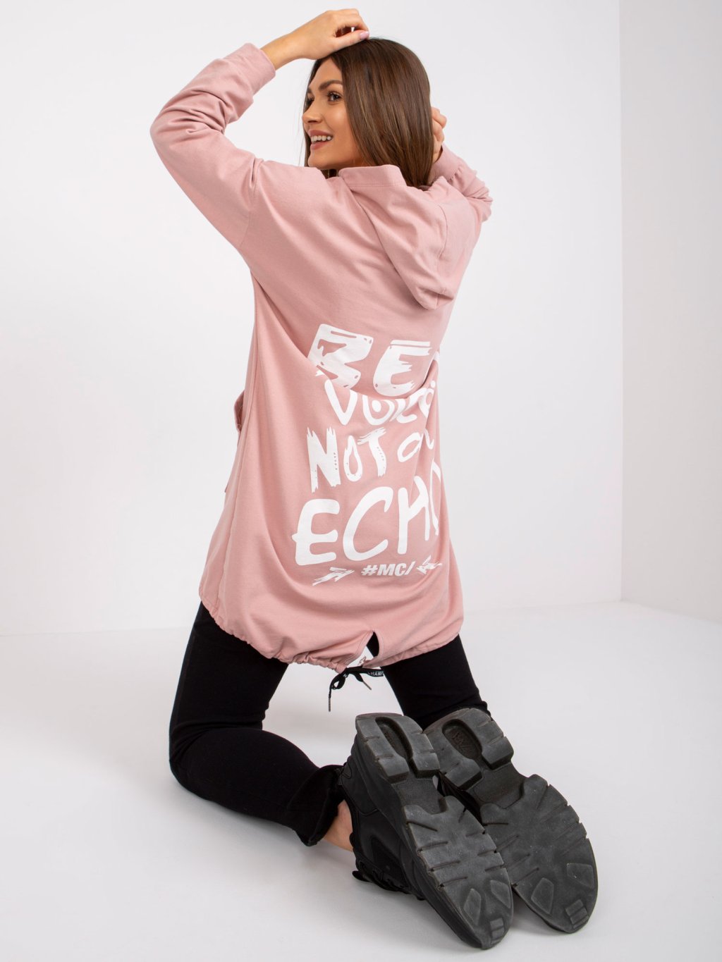 Púdrová dlhšia mikina Sophie s potlačou na chrbte