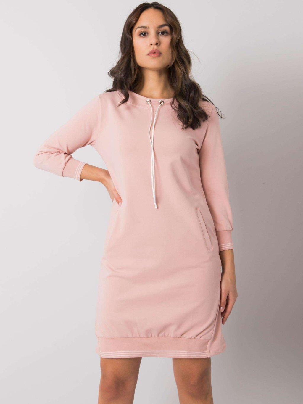 Púdrové mikinové šaty Sinead s výstrihom na šnúrku