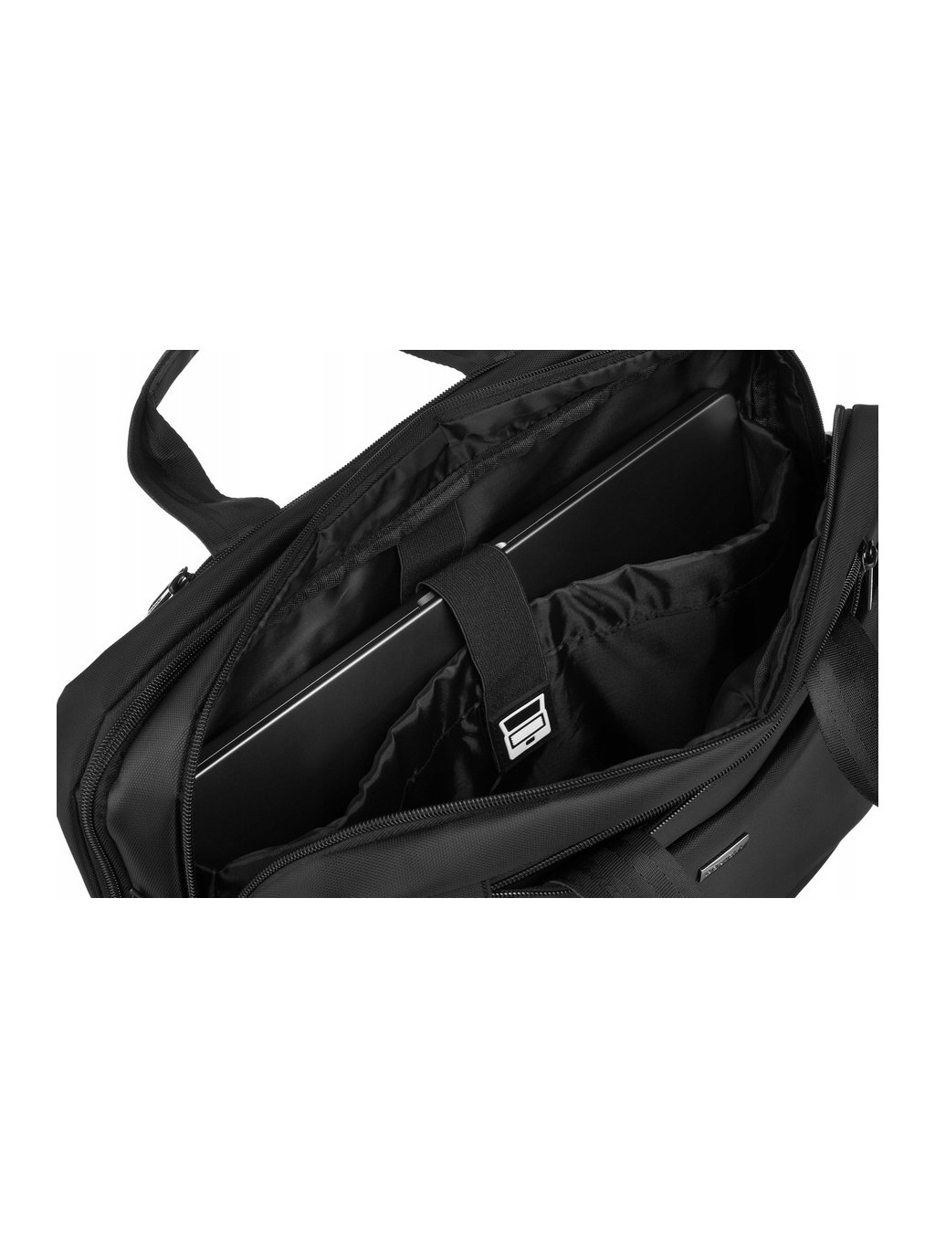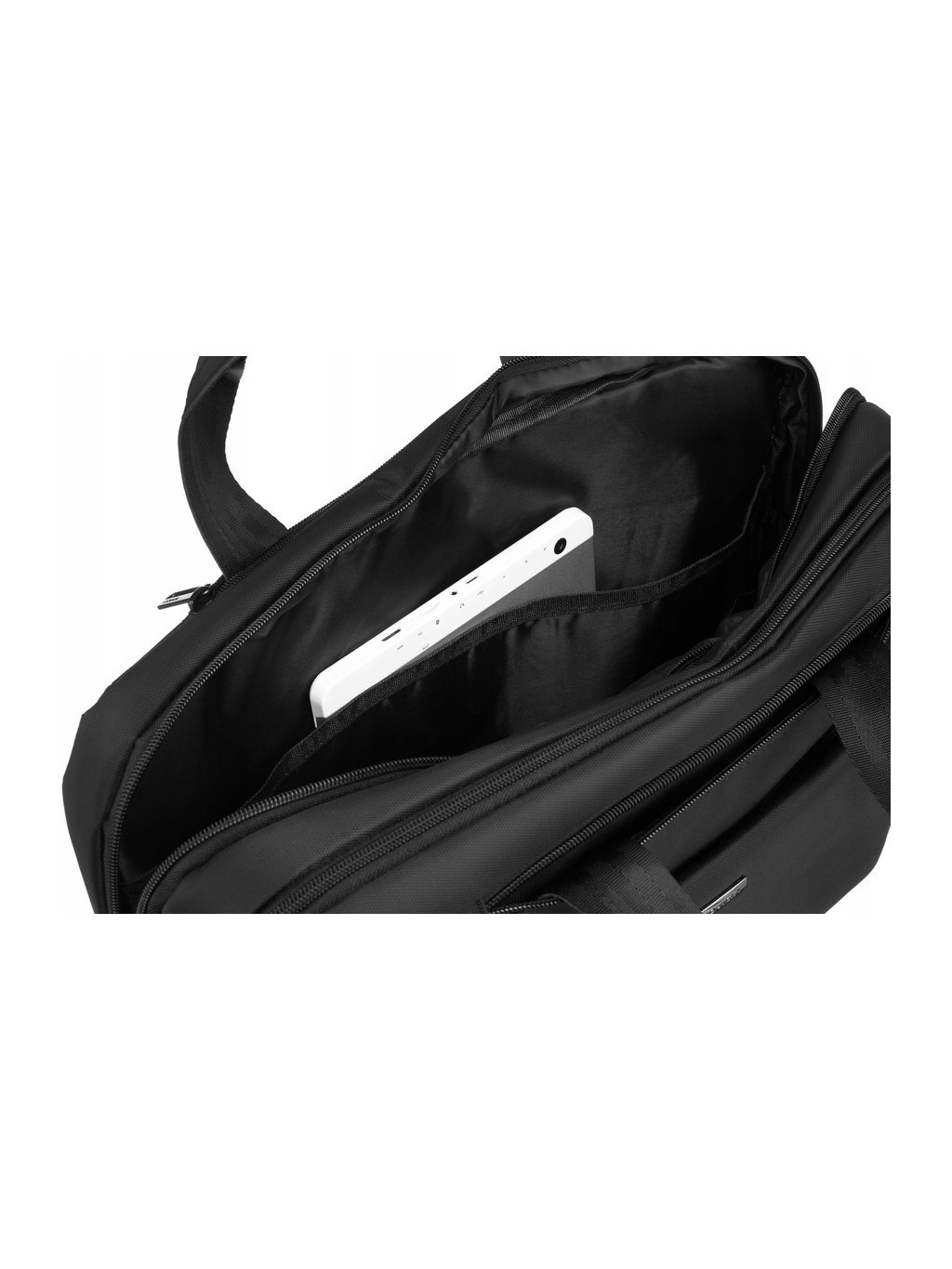 - predná priehradka: 1 vyhradené vrecko na notebook uzavreté pásikom na suchý zips, 2 menšie otvorené vrecká, 2 priehradky na perá