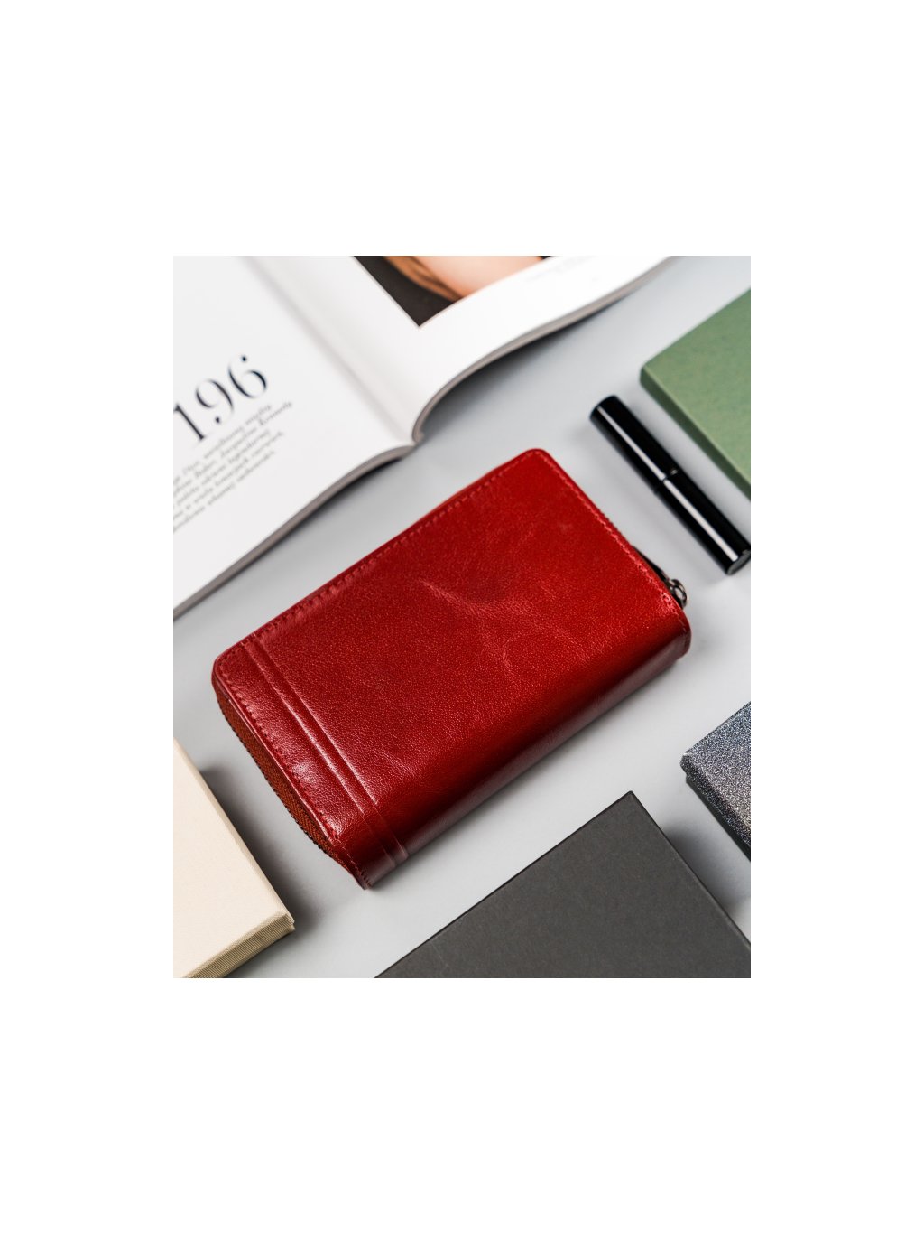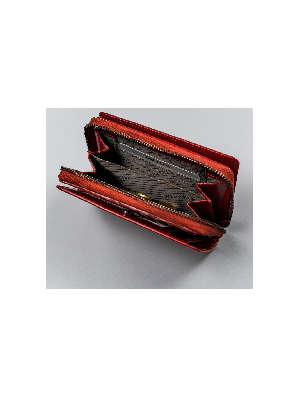 • vo vnútri je 17 miest na karty, 6 miesta pre väčšie doklady, vrecko na zips, dvojité vrecko na mince na zips, priehradka na bankovky