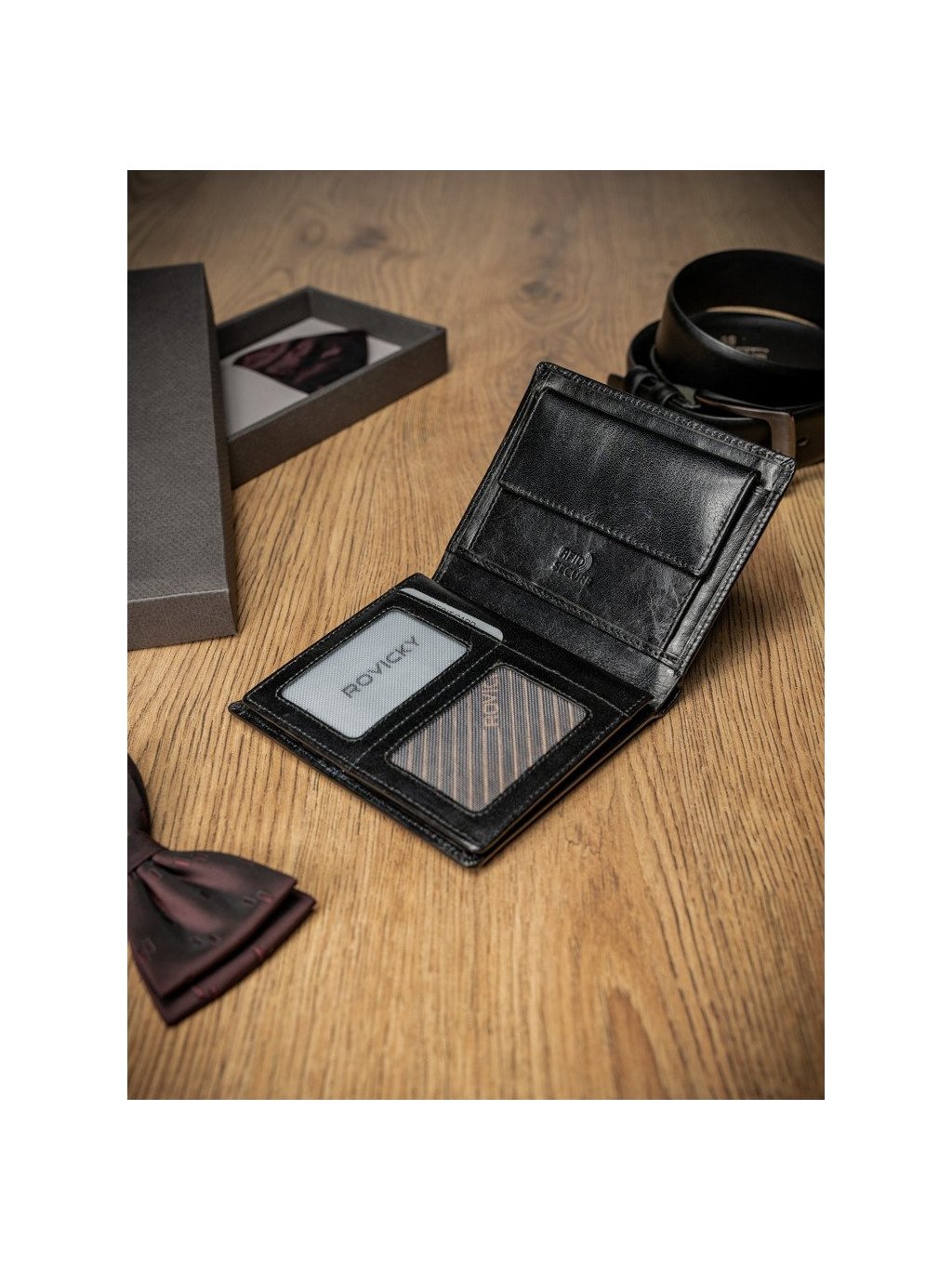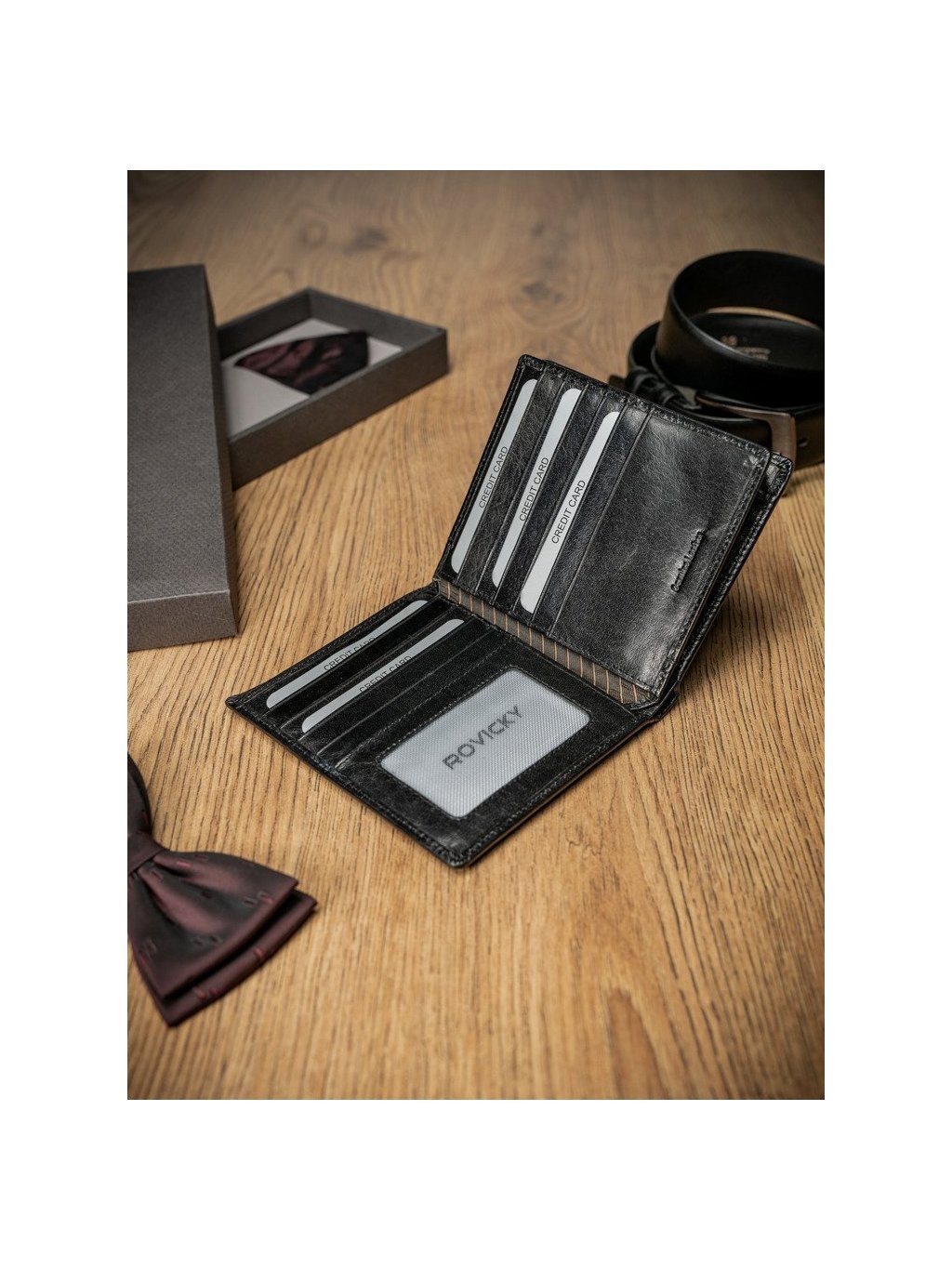 Elegantná pánska peňaženka s ochranou RIDF, ktorá chráni vložené karty pred neautorizovaným bezdrôtovým prečítaním dát.