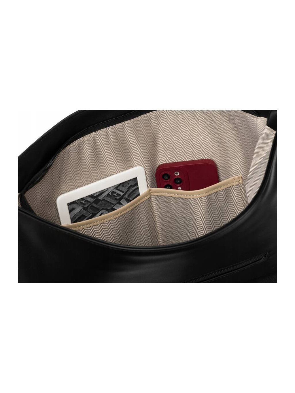 - vnútri dve otvorené vrecká a vrecko na zips