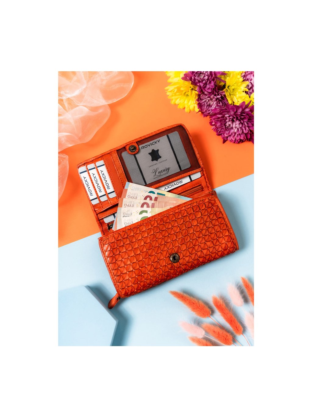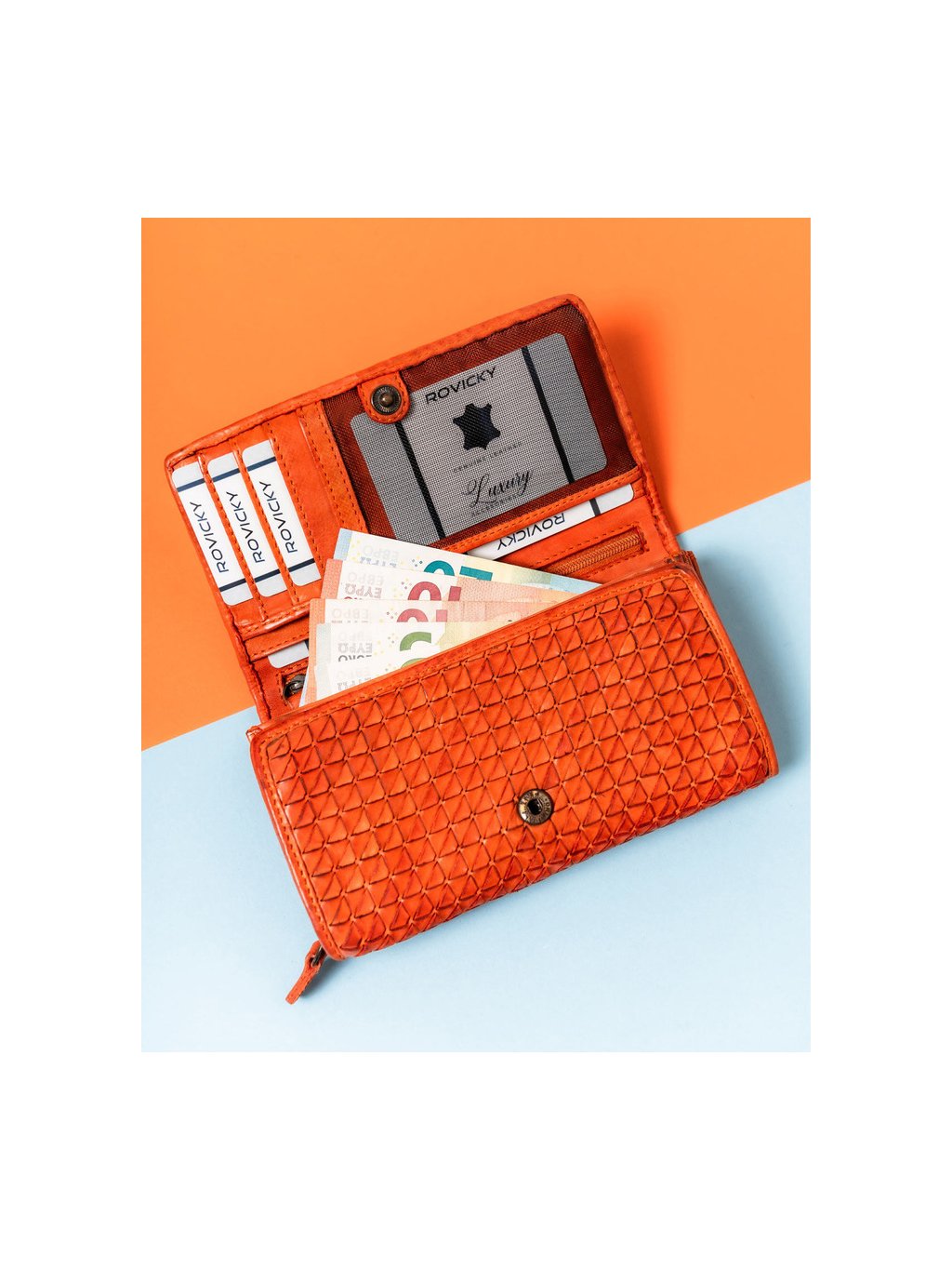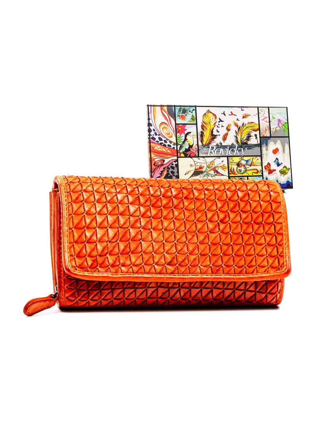 Rovicky Elegantná dámska oranžová peňaženka s 3D textúrou V303