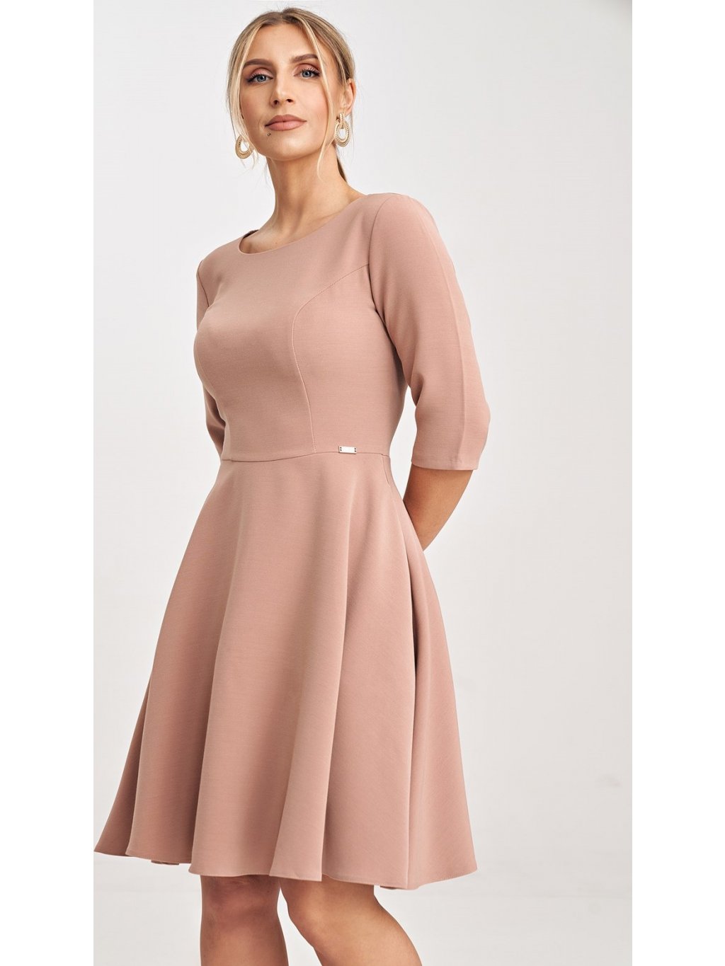 Púdrové dámske mini šaty s 3/4 rukávmi