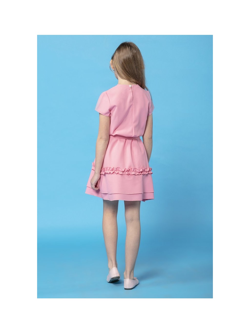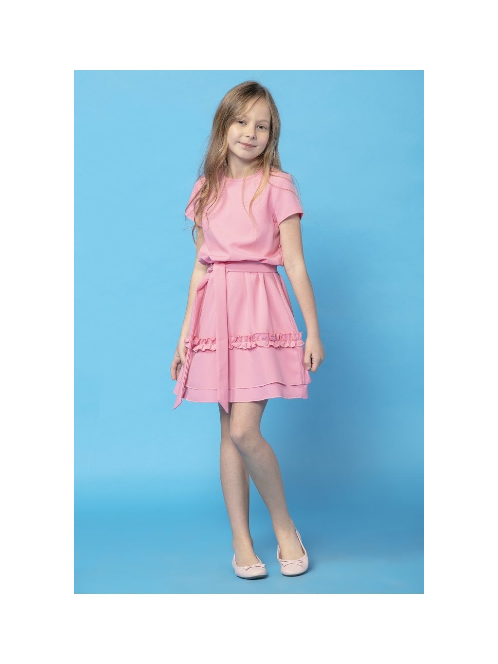 Ružové dievčenské šaty mama a dcéra s ozdobným volánom