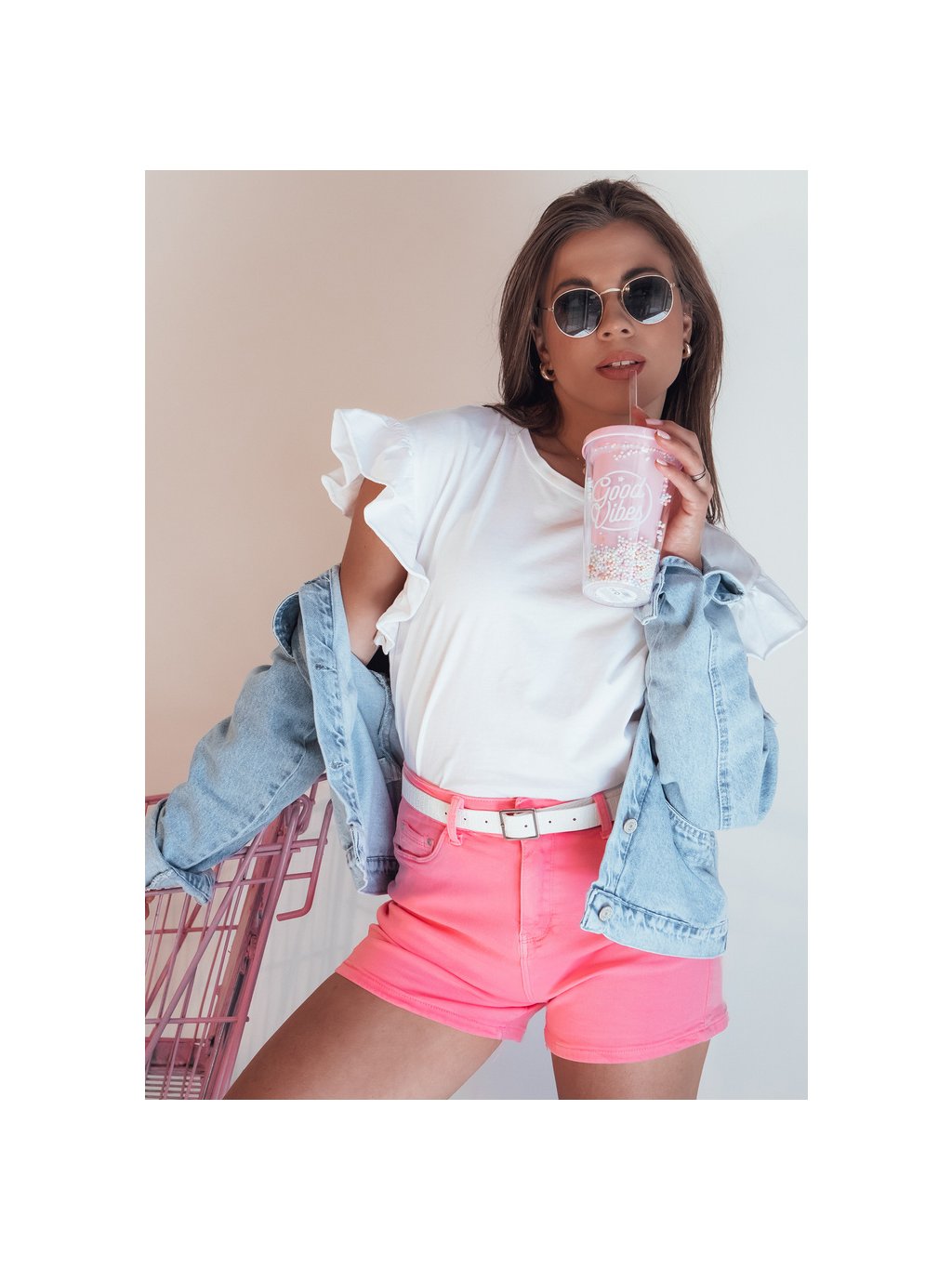 Ružové džínsové kraťase GLAMWEAR