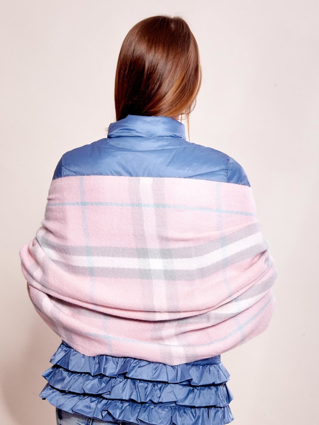 Ružový dámsky károvaný šál