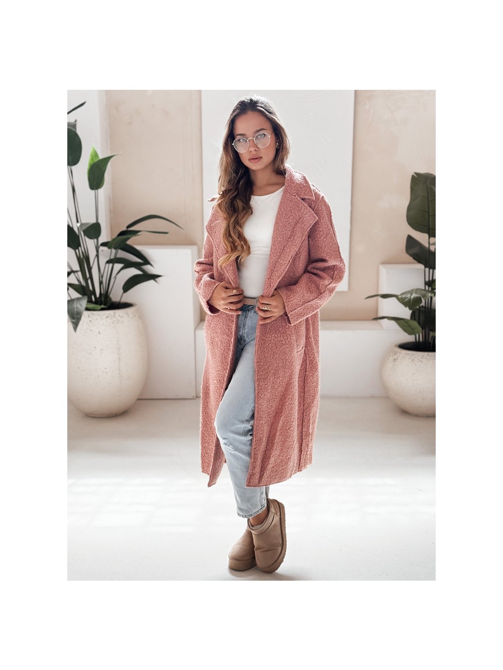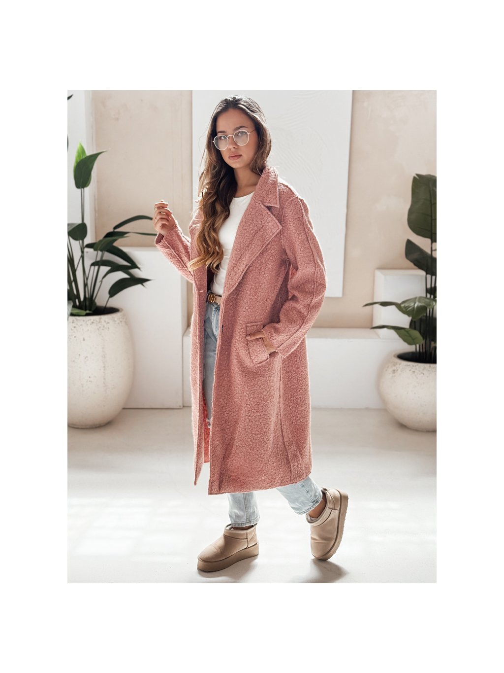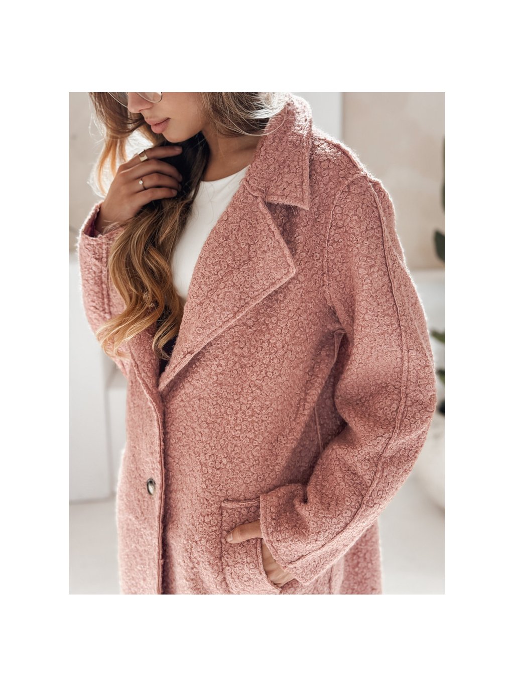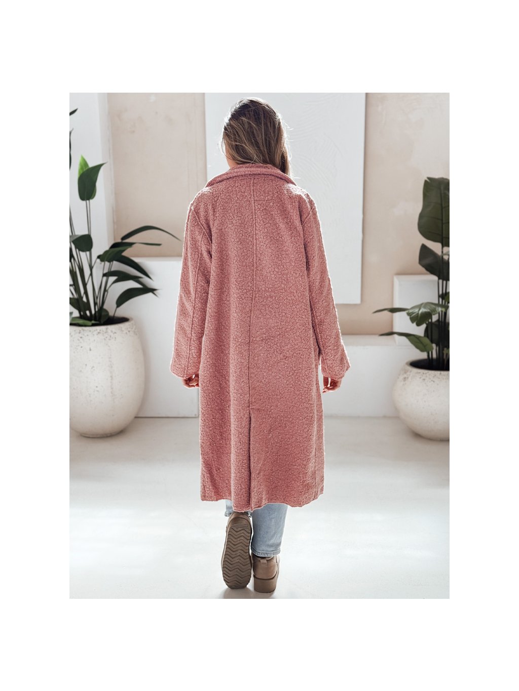 Ružový dámsky teddy kabát