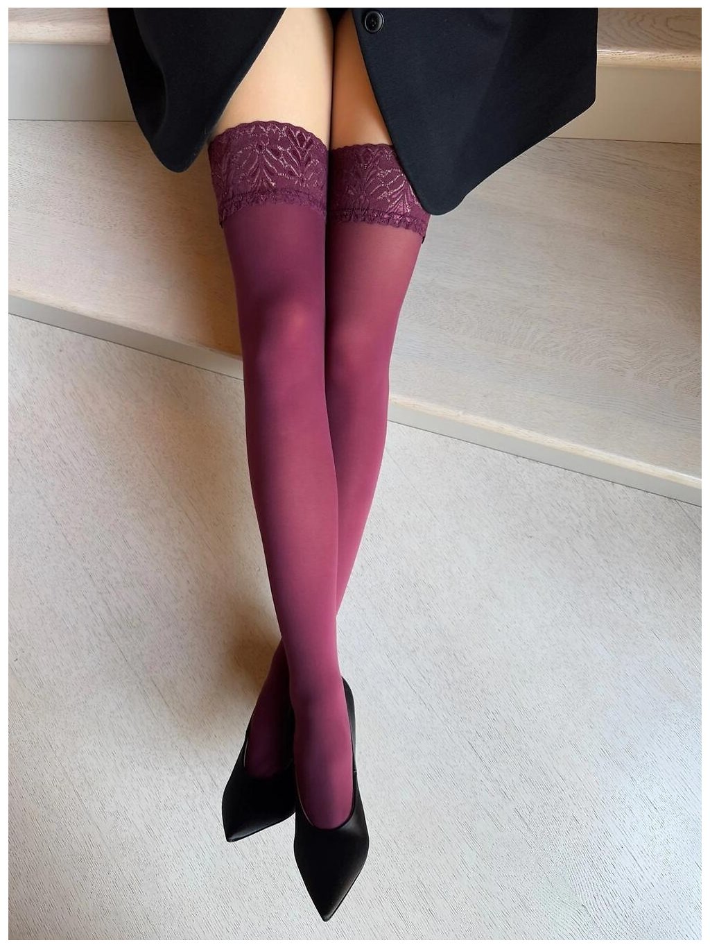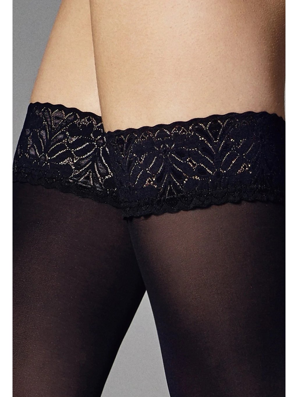 Pończochy samonośne z mikrofibry o grubości 60 deň, gładkie. Ozdobná koronka na silikóniu.